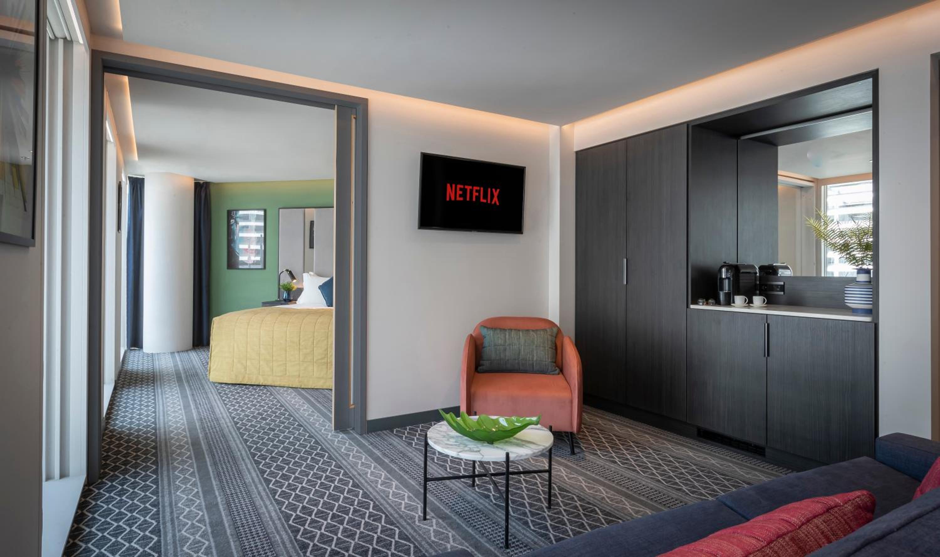 Experience luxury and comfort in our rooms equipped with a flat-screen TV featuring Netflix and LED mood lighting. Some rooms offer stunning city views, and all rooms come with a private bathroom. Stay connected with complimentary WiFi and stay cool with air conditioning.