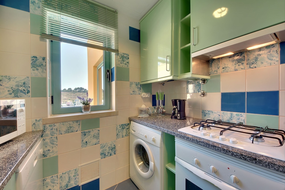 A very modern apartment with excellent facilities. Spent so much time on the balcony enjoying the view of the marina..the pool was clean and never overcrowded so we were always able to get a sun lounger .we used the road train to get to the old town and this stops outside the appartment and for 6 euro you can get a day ticket to hop on and off .nice cafe across the road from the appartment for coffee and cake we thought was great value for money. We did two boat trips one all day trip with beach and barbecue ( food was very good ) and we had time to have a swim. We also did kayaking and visited the caves. Both boat trips were great value for money and the staff were friendly and very helpful. Lots of places to eat and drink at the marina so no need to go anywhere else.for a meal. We were happy with all communication regarding our stay .taxi was waiting at the airport and we were greeted on arrival and given the keys and a tour of the property. Taxi was punctual on departure .my sister and I had a wonderful holiday and would highley recommend this appartment and location