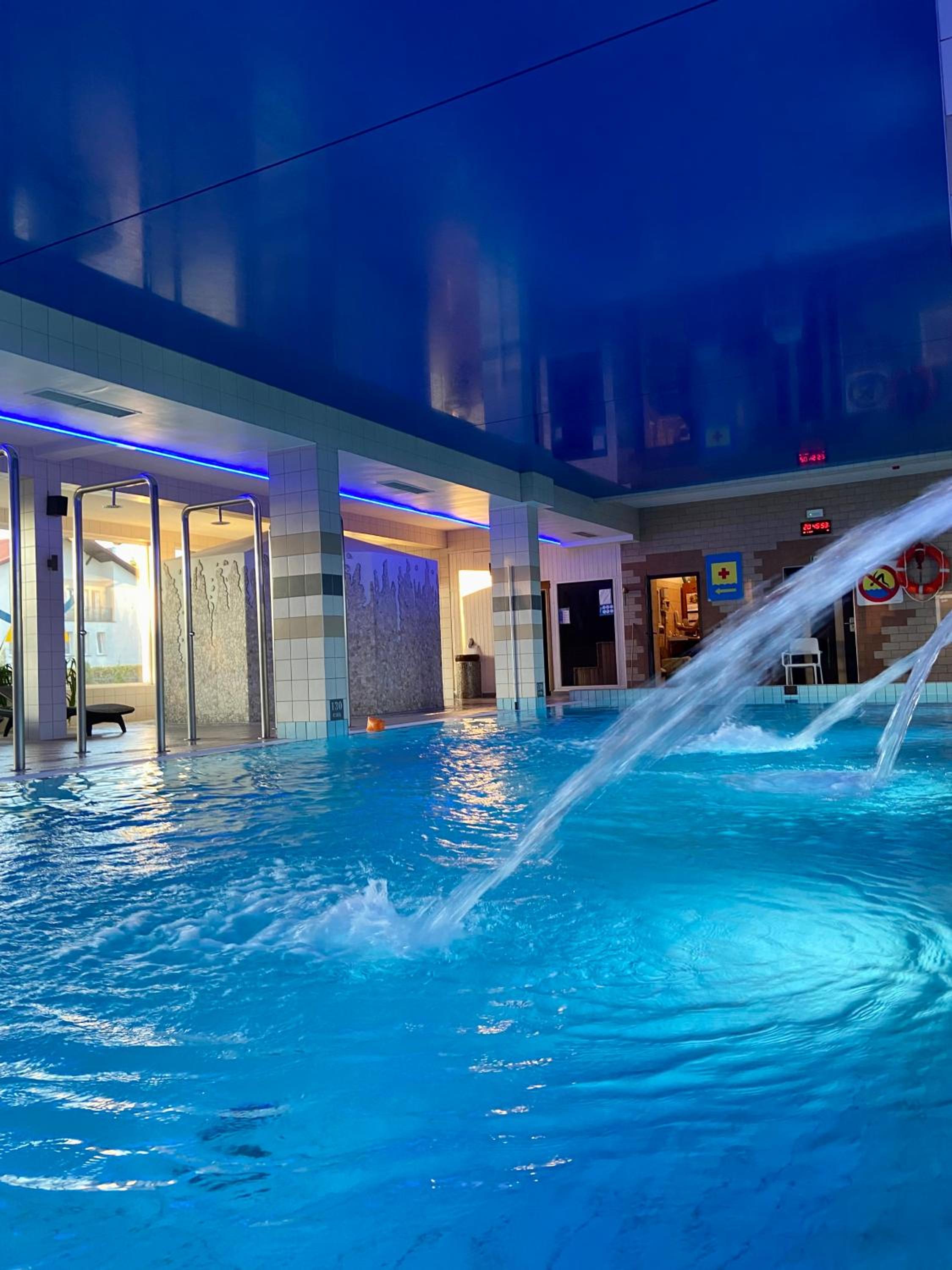 Aqua Park Extravaganza: Dive into excitement at our aqua park featuring an indoor swimming pool with hydromassage, thrilling water slides, and rejuvenating saunas.