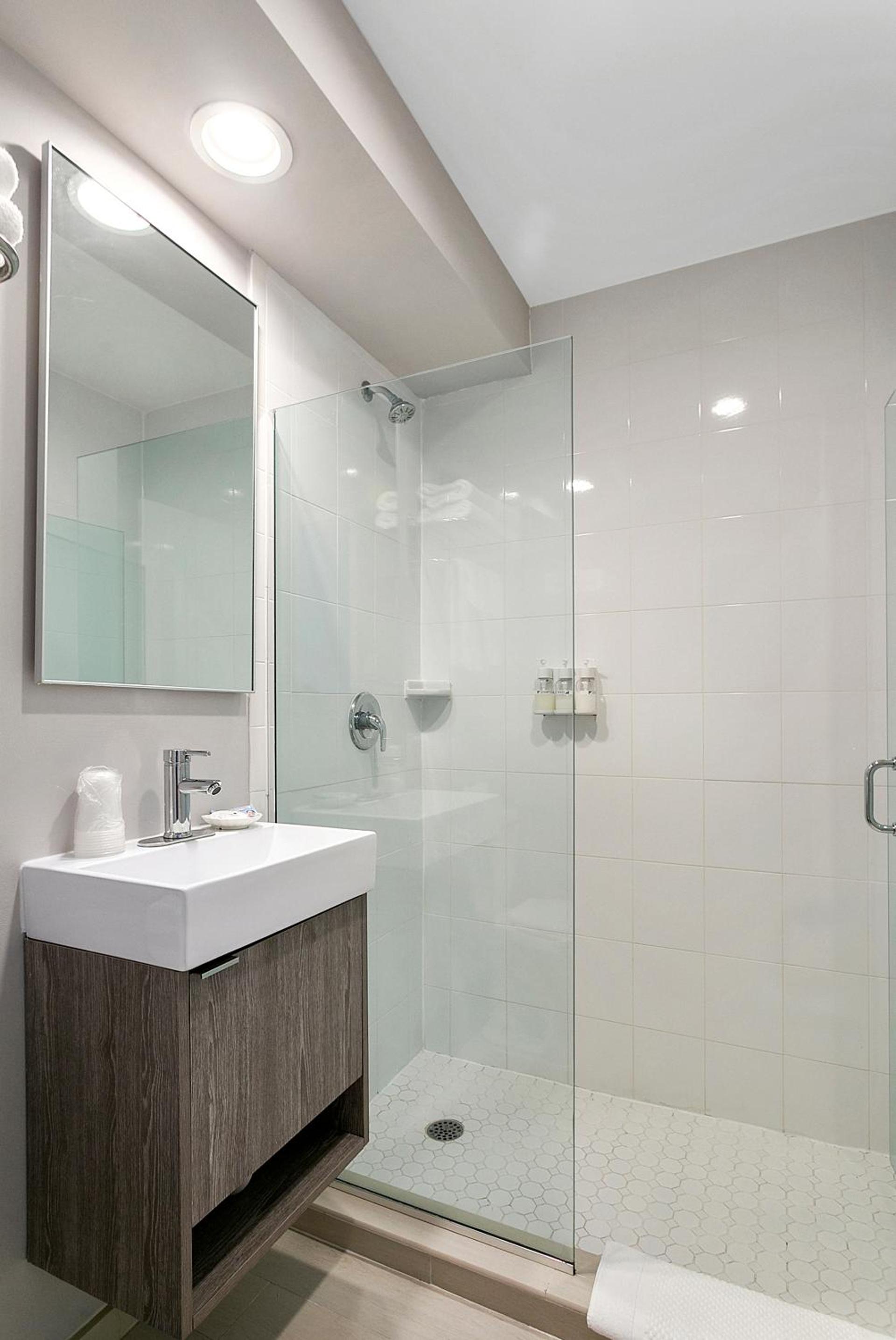The bathrooms were incredibly small and there was no place to put any product as it was just a trough sink. Also, there were no luggage racks to put your luggage out so it had to be put on the bed or the floor.