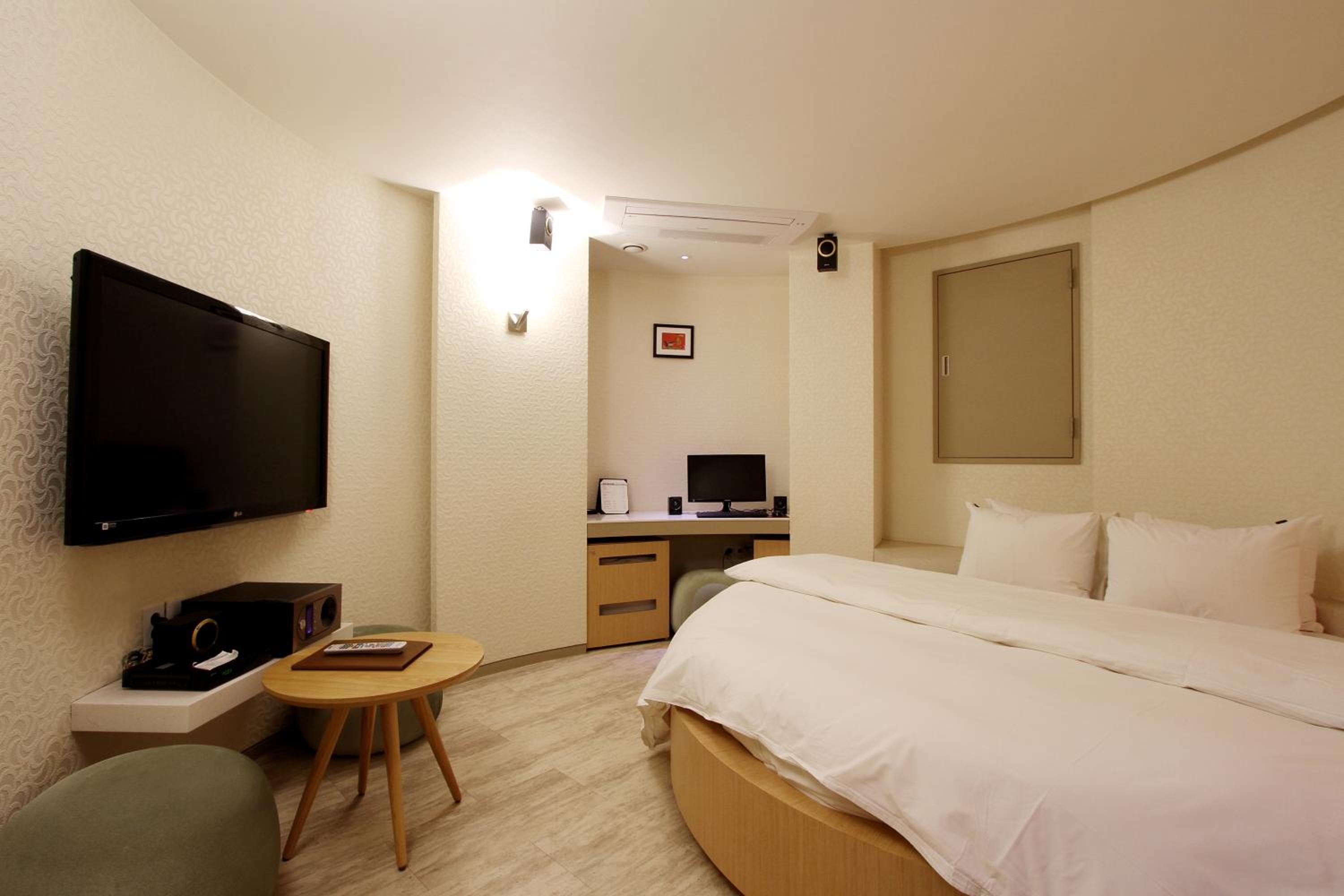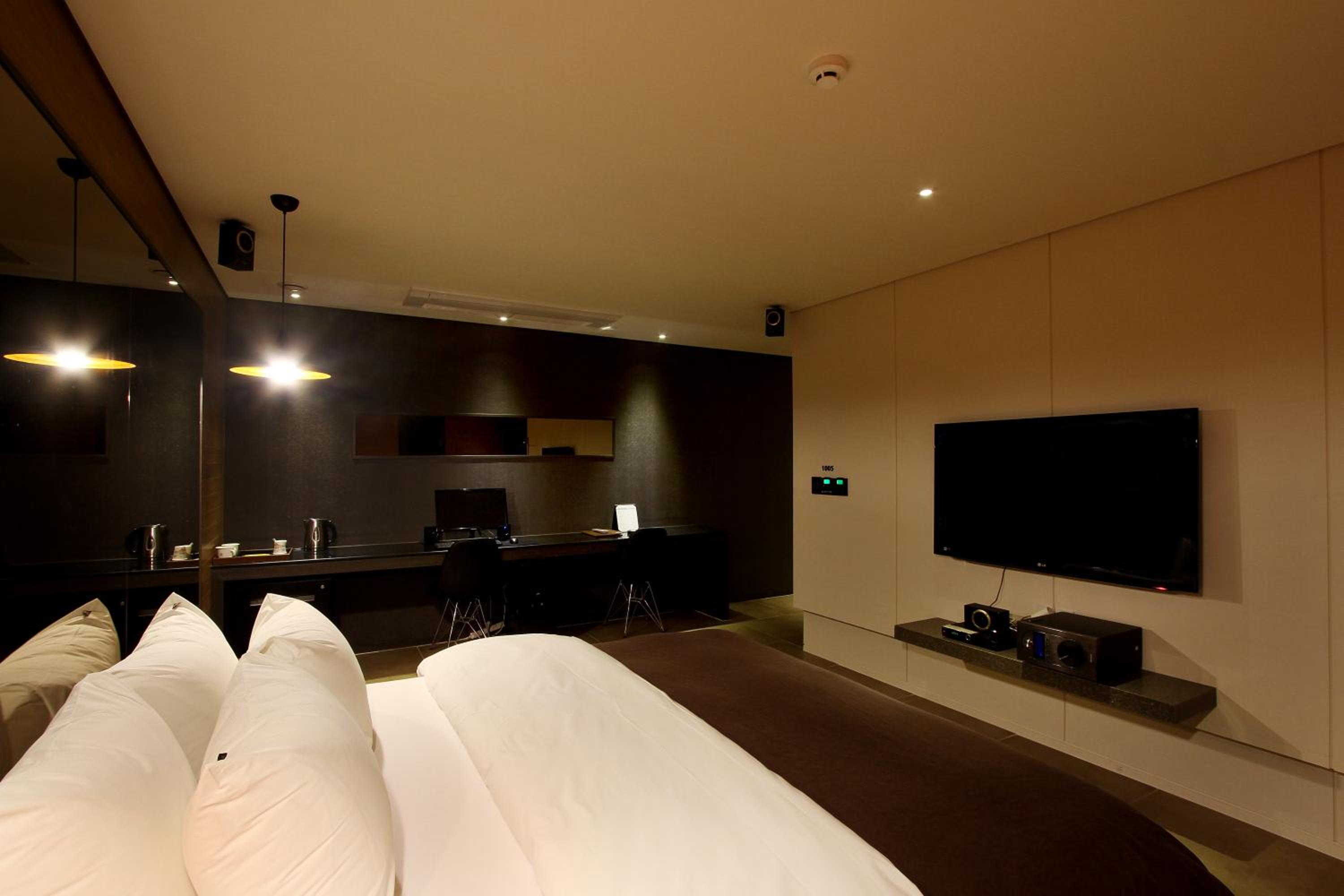 When you arrive have them so you how to use the tv remote it controls the air conditioner also the lights turn on when you incert the hotel card into the wall slot. It can be very confusing for a foreigner. However it gets easy once you learn how to operate everything. The room is well worth the money most days its 80,000 Korean won However on Saturday its 175,000 Korean won.