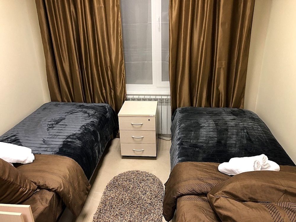 Obwohl schon etwas abgelegen von Moskau, gibt es doch viele Restaurants Bars Geschäfte und Kioske. Das Zimmer und die Rezeption waren gut was mir jedoch nur gefehlt hat waren dunkle Gardinen am Fenster da ich einen sehr leichten Schlaf habe aber das ist ja wohl nicht jedermanns Problem.