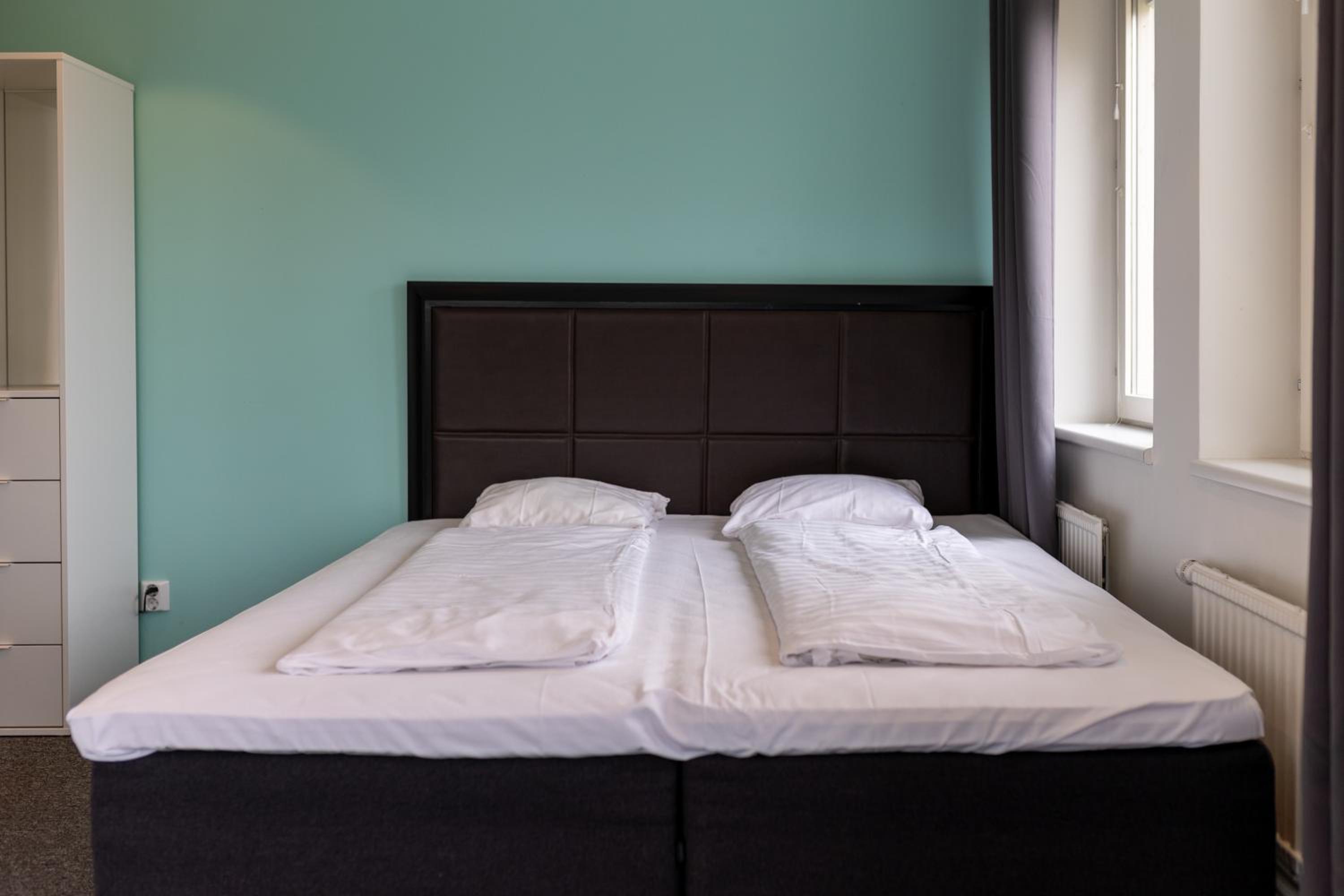 Mycket tunna täcken i sängen. Fick be om extratäcke för att inte frysa.