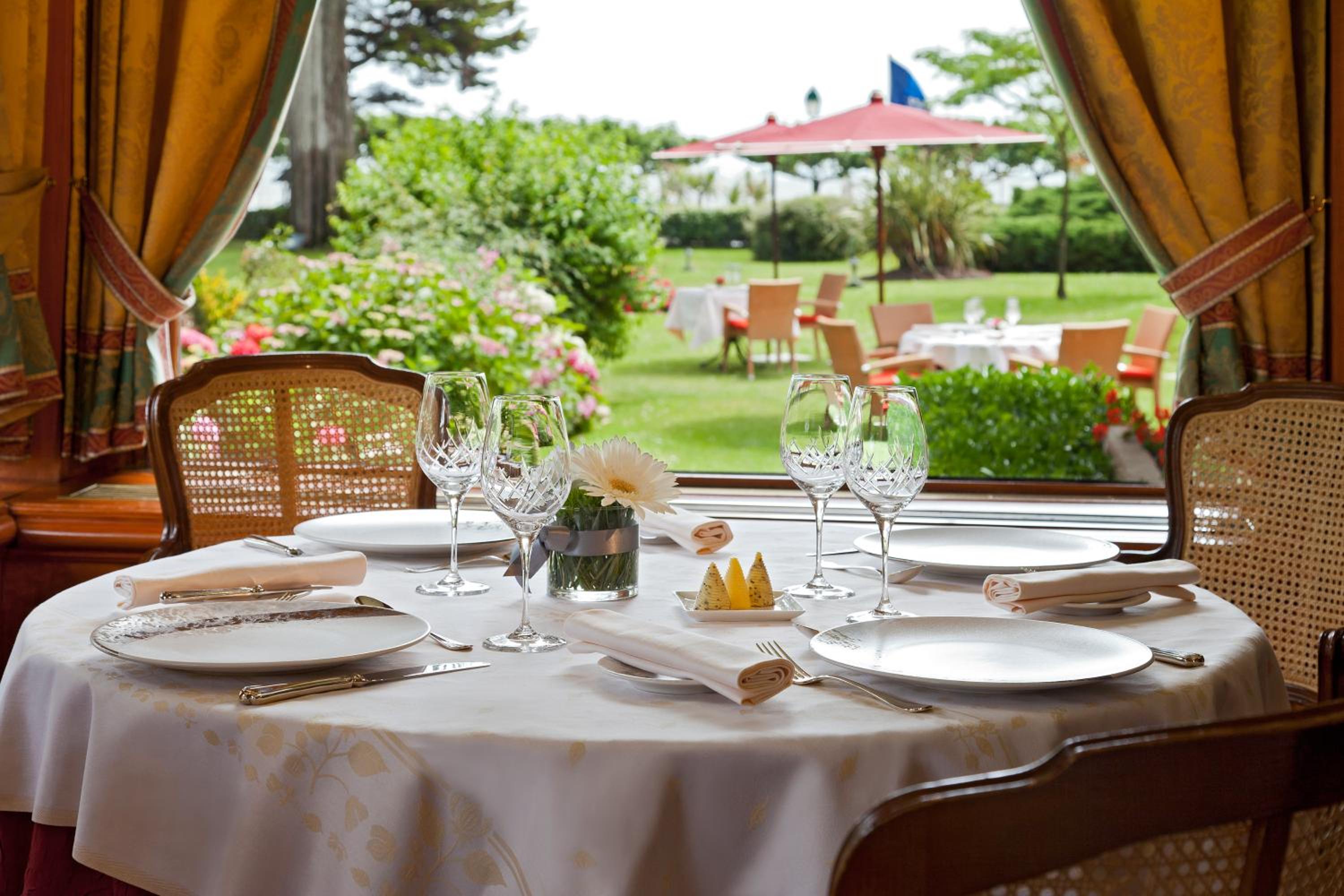 Escape to our tranquil country manor nestled in La Baule's serene gardens by the sea. Elegant Accommodations Indulge in spacious rooms with minibars, satellite TV, and luxurious bath amenities. Culinary Delights Enjoy a daily continental breakfast and exquisite dining options at our elegant restaurant and bar. Complimentary Activities Take advantage of free bike rentals, golf and tennis lessons, aquagym classes, and water sports. Unwind by the pool or explore nearby activities. Book now for an unforgettable seaside retreat at Castel Marie Louise.
