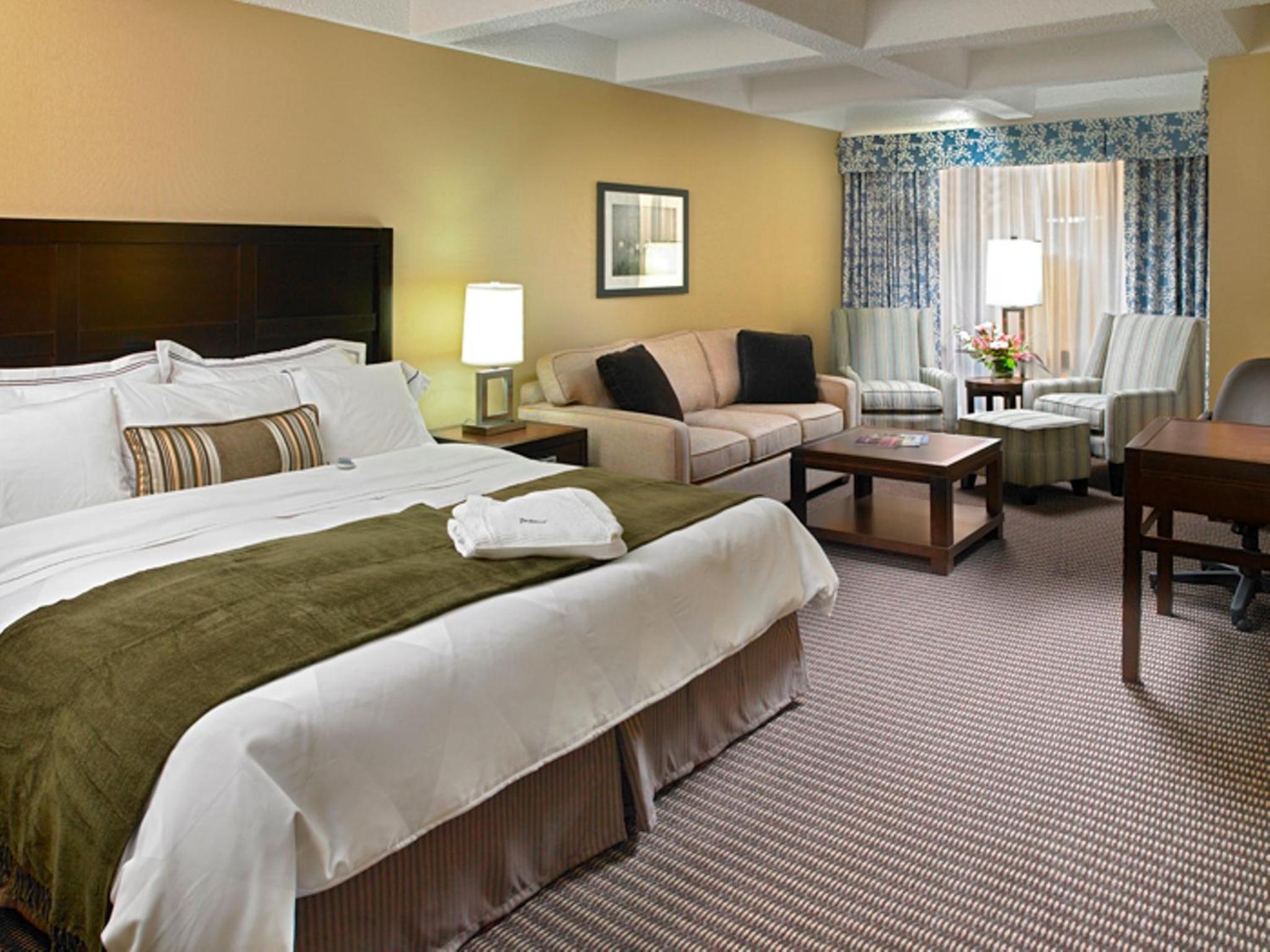Featuring a fitness centre with a saltwater pool and juice bar, this Edmonton hotel offers guests a chance to rejuvenate and stay active during their stay. The indoor running track and a variety of activities like billiards, squash, and darts provide entertainment options for all.
