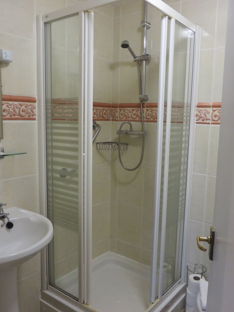 I had no bath mat or milk on arrival , both were rectified. Very quickly even though cases were still being brought to the rooms and evening meal was imminent . The only place for toiletries in the ensuite was on the window sill over the lavatory which is neither practical or hygienic . No shelf in the shower. For shampoo etc . A small hand basin in the en-suite wasn’t particularly suitable for needs . And also had a large towel rail across the top which meant the sink could not be used . The kettle wouldn’t fit under the tap and teapot was provided to fill the kettle with water. You also had to hold your finger down on the button to allow the kettle to boil.