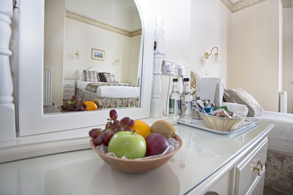 Stayed for 2 nights in a Superior Sea view room. Parking is nightmare so be sure to pre book with the hotel when you book your room. It was a little confusing and difficult at first but with a lot of help and patience from the lovely Violet on reception we finally sorted it out. Room was much smaller than we imagined and rather cramped. There were 2 sash windows which gave a view of the sea. Basic hospitality tray, beds were very comfy with good linen. Bathroom very small and shower tiny, think if you were a large person you would struggle. Toiletries basic but we had brought our own so not a problem. room and bathroom were very clean. Downstairs area is very attractive and it also has a very elegant and comfortable lounge. Dining area ok, I had asked for 8pm seating and was surprised this was not allowed, the latest we could eat was 7.30. Food was fresh and well cooked, service was good, staff friendly but seemed slightly frazzled at times. I think the biggest problem this hotel has is the bar area. We like to have a drink before dinner and although the gentleman who tended bar was very nice and polite he was very slow and it didnt help that the card machine worked at a snails pace, so there was always a queue for drinks. Having another member of staff to help at the peak times would have made things much better. This wasnt just our view, many guests commented on the service. Overall a pleasant stay, and thank you again to Violet who was always smiling and helpful.