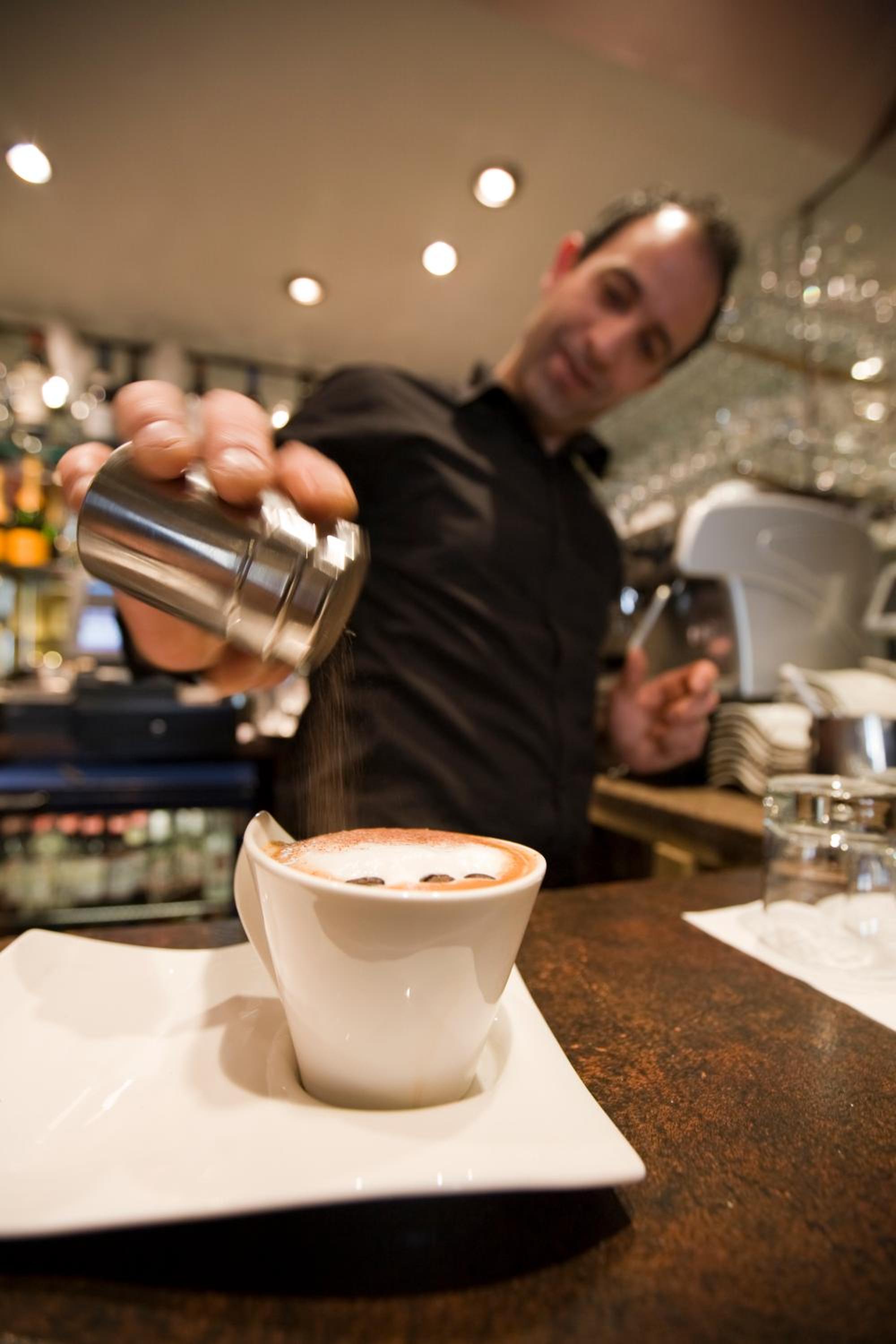 The bar area. The breakfast venue and staff.