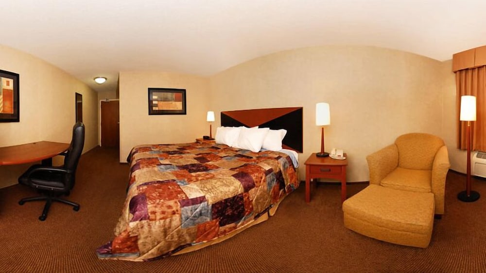 The room and hallway had a over whelming odor of stale stagnant air. We were on the first floor and were able to open a window in the room it helped a little. I went to use the pool again strong odor of stale air, absolutely no ventilation.I did not chance using the pool. The bathroom was not the cleanest the were smudge marks on the inside of the door. The paint on the walls was chipped, and there was a small hole in the wall above the light switch.The hair dryer was held together with scotch tap. Luckily we had our own.The stopper in the tube did not work. We checked the room for bugs thankfully there were no signs of any. I tired to call the front desk with the in room phone it did not work. I then called on my cell to report it, I was told they would leave a note for the day people about the issue.The only reason we stay was because we had a long ride to get there and were only staying one day and leaving early in the morning. The next day when leaving ,we opened the door to be hit with the smell off over cooked waffles and maple syrup. When we walked to the lobby to check out we found the source of the smell. The complimentary breakfast was being served in a small little alcove to the left of the lobby. This hotel was a complete disappointment. The morning desk clerk went out of his way to help us with a issue we had with booking. I am going to call Expedia to see if I can get a full refund. Would not ever stay here again.