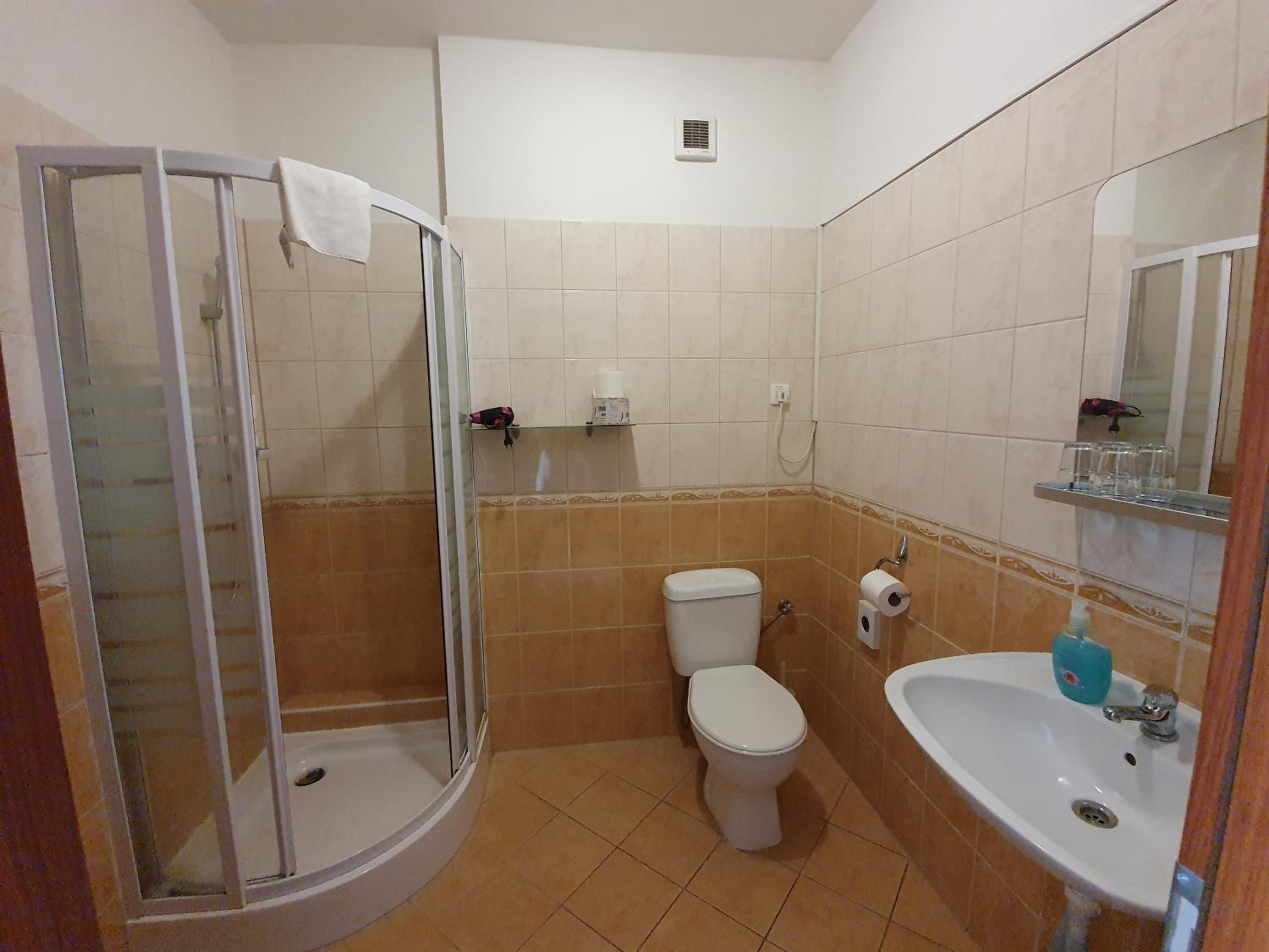 Na hoteli neboli papuče čo má dosť zarazilo aby človek musel v zime behať bosí. Kúrenie síce namontované je ale keď sme ho zapli stále bolí chladné. Nábytok neskutočne moc vŕzgal a človek sa bál že sa posteľ pod ním prepadne. Sprchový kút bol vo veľmi žalostnom stave. Hlavica nedržala v stene a pri sprchovaní lietala zo strany na stranu. Držiak bol nesprávne pripevnený.