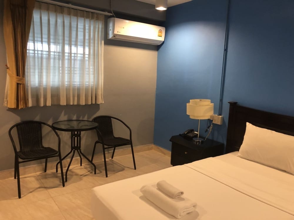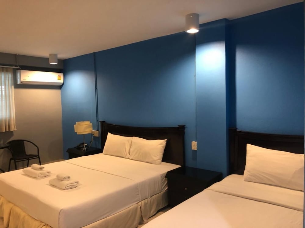 This place is hard to find and when you book a room here they do not tell you that you have to check in at another hotel. There are no signs for this place and the sois do not have any names on them. I got a large room BUT the toilet smelled bad due to sewer gas so I had to keep the door closed and the fan on when I was in the room. They did not use a cement sealer on the floors when they built this place so there was a water leak on the ceiling from the room above. This left a big stain and mold right over the bed. I booked this place because they said there was breakfast and I paid more per night to get the breakfast. Well the breakfast was noodle soup every day and it was the same soup every day and you could buy it for 25 THB. They DO NOT give you soap or shampoo so you have to go to 7/11 to buy some.The only good thing is this is a quiet place because there is nothing around here...very few places to eat and you are 200 meters from the beach..at least there is a 7/11 at the beach. The traffic is bad so going anywhere can take a long time...this is close to soi 12 and the night market is near soi 8 and it took 30 min on a songtow to get there. There is only 1 tree on the beach where you can sit because all the other shade areas are taken over by the vendors and you have to rent a chair. There is no elevator so you pay more for ground floor room than a room on the 5th floor.