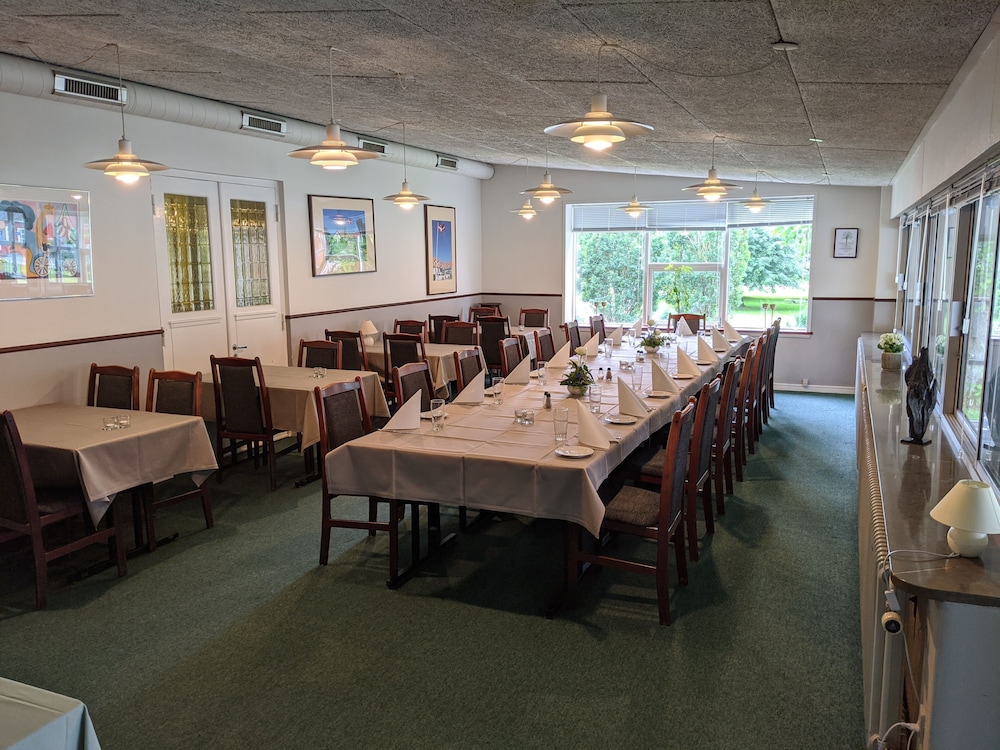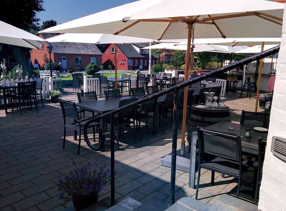 Experience stunning views of the surrounding landscape from the terrace and garden at Sevel Kro. Perfect for a relaxing retreat and enjoying the outdoors.