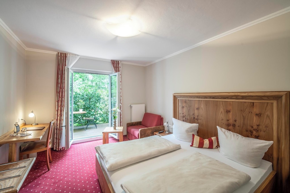 Das Hotel verfügt über einen grossen Biergarten, in unmittelbarer Nähe sind 3 Badeseen und weitläufige Grünflächen, ideal zum spazieren gehen, oder für Radtouren.