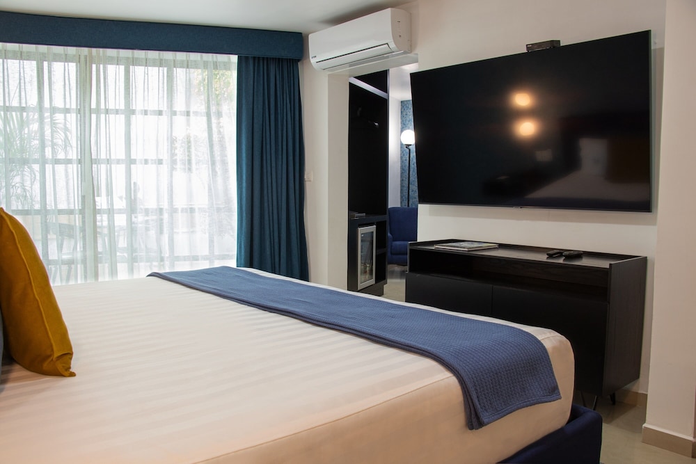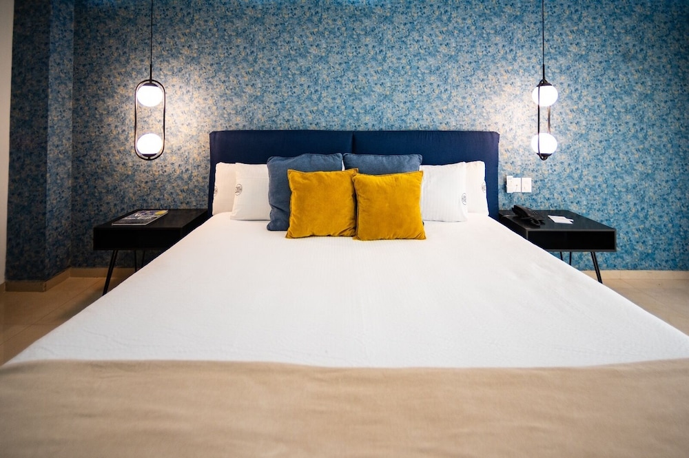 La habitación estuvo bien en tamaño, pero revisando la habitación en una de las mesas de noche se encontró una caja de condones y un paquete abierto, indica que no se realiza una buena limpieza profunda en la habitación y pone en duda si las sábanas están limpias o todo lo demás