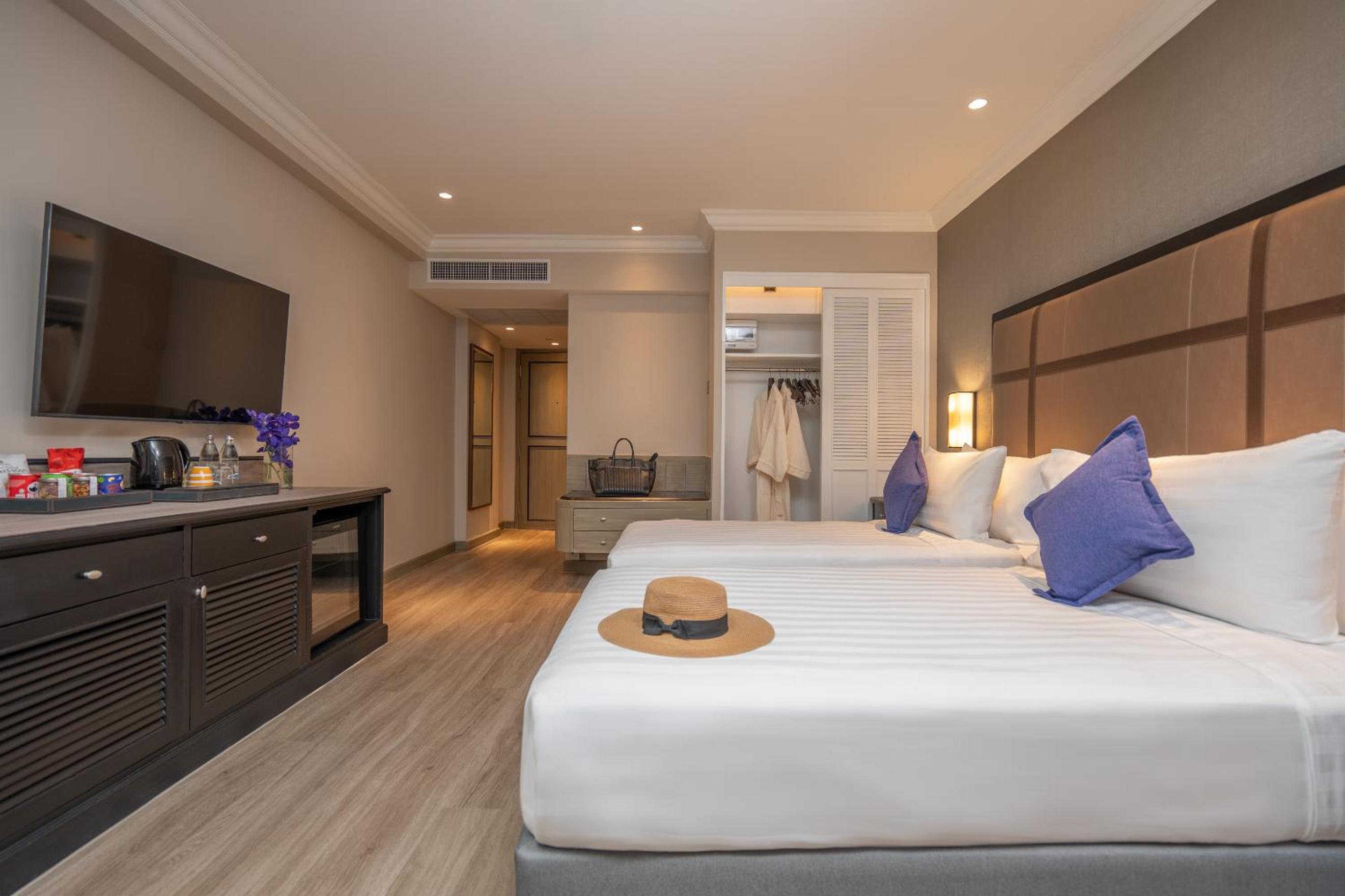 Unwind at our roof-top pool or stay active at the fitness centre. Enjoy delicious international and Thai cuisines at Tropicana or sip on drinks at Season and Mirage bars.