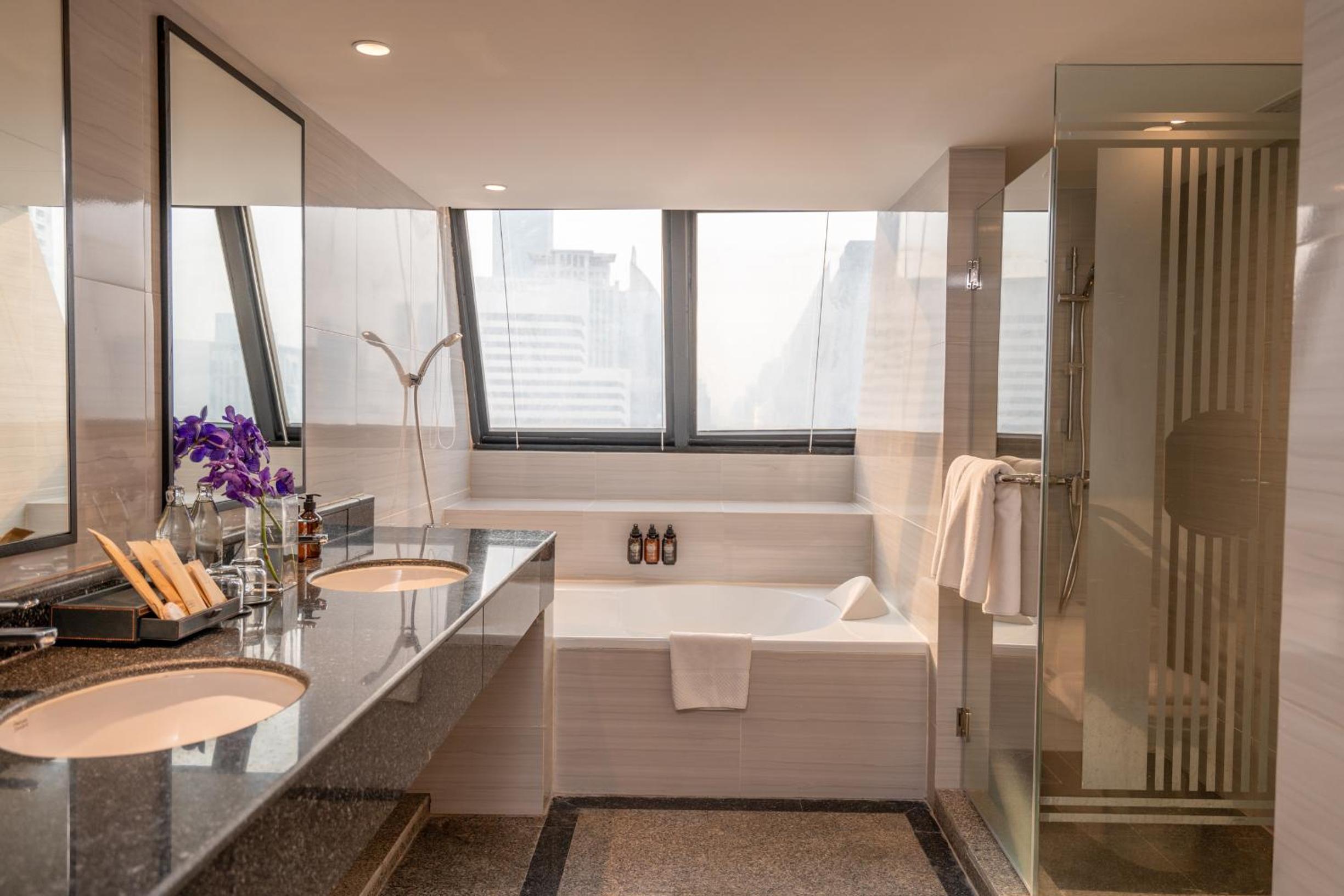 Indulge in our modern rooms with floor-to-ceiling windows offering breathtaking city views. Each room is equipped with all the essentials for a comfortable stay.