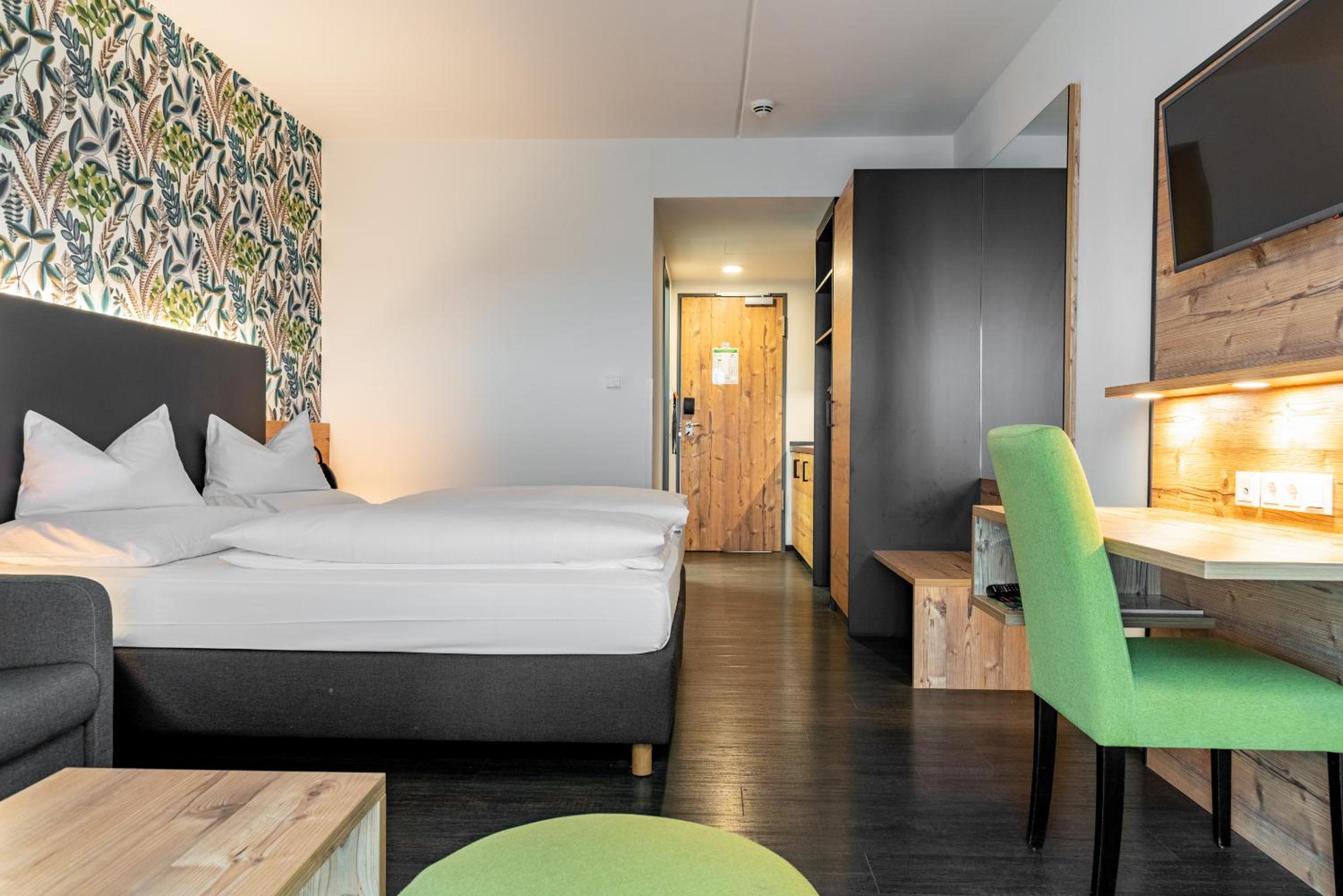 Trotz Autobahnnähe angenehm ruhig. Das Zimmer war für unseren kurzen Aufenthalt vollkommen ausreichend und