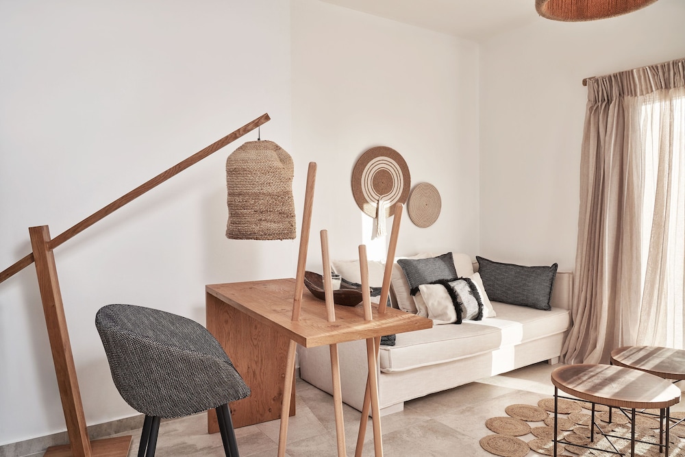 The suite was very clean and in good shape, and was well kept every day. The complimentary breakfast was so good and always brought to us on time. The location is a bit removed from the rest of the popular areas of the island but an easy drive to get to places. The hotel was very close to Sirocco (amazing restaurant) and Aqua Loca (great beach club).