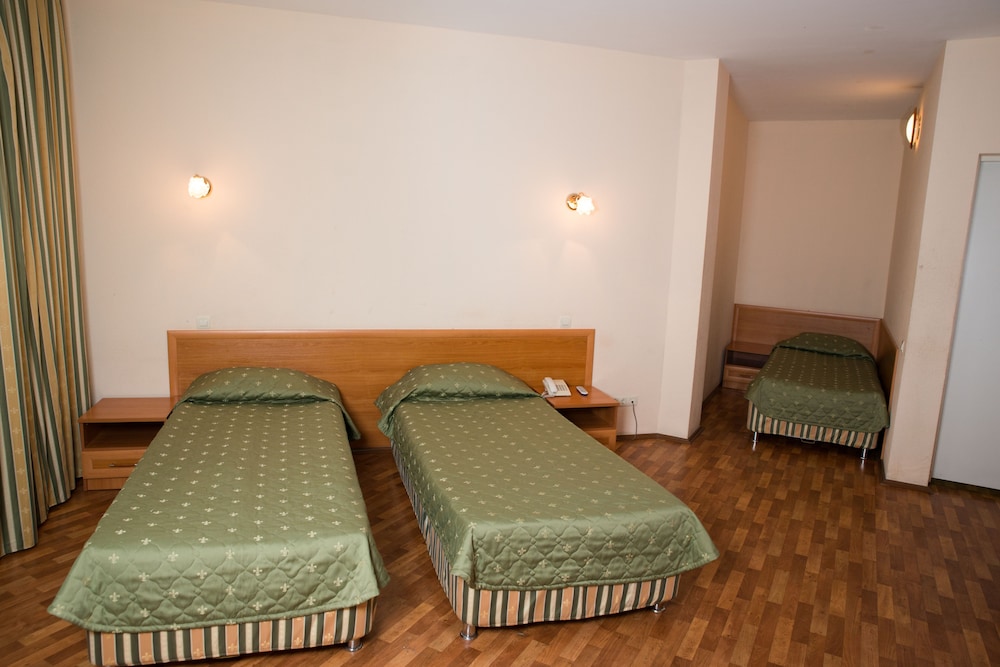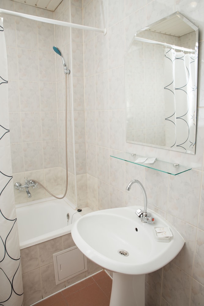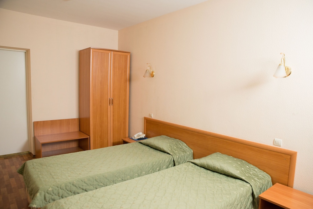 Большой номер, чисто, интерьер обычный, нам нужно было просто переночевать, за свою бюджетную цену вполне достаточно. Из минусов - в номерах не предусмотрено освещение, только при входе (как бы в прихожей), в самом номере 2 настенных светильника (работает только один из них) и торшер (не работает), темно((. Было очень ветренно, всю ночь (!!!) гремел карниз от дождя и ветра.