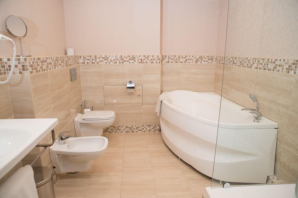 Отель понравился, чисто, тихо, уютно. Двое взрослых и трое детей, мы прекрасно разместились в семейном номере, состоящем их двух больших комнат. Ванная комната тоже большая и именно с ванной, а не с душевой кабиной. За сравнительно низкую цену считаю все вполне достойно! Из минусов - далековато до метро.