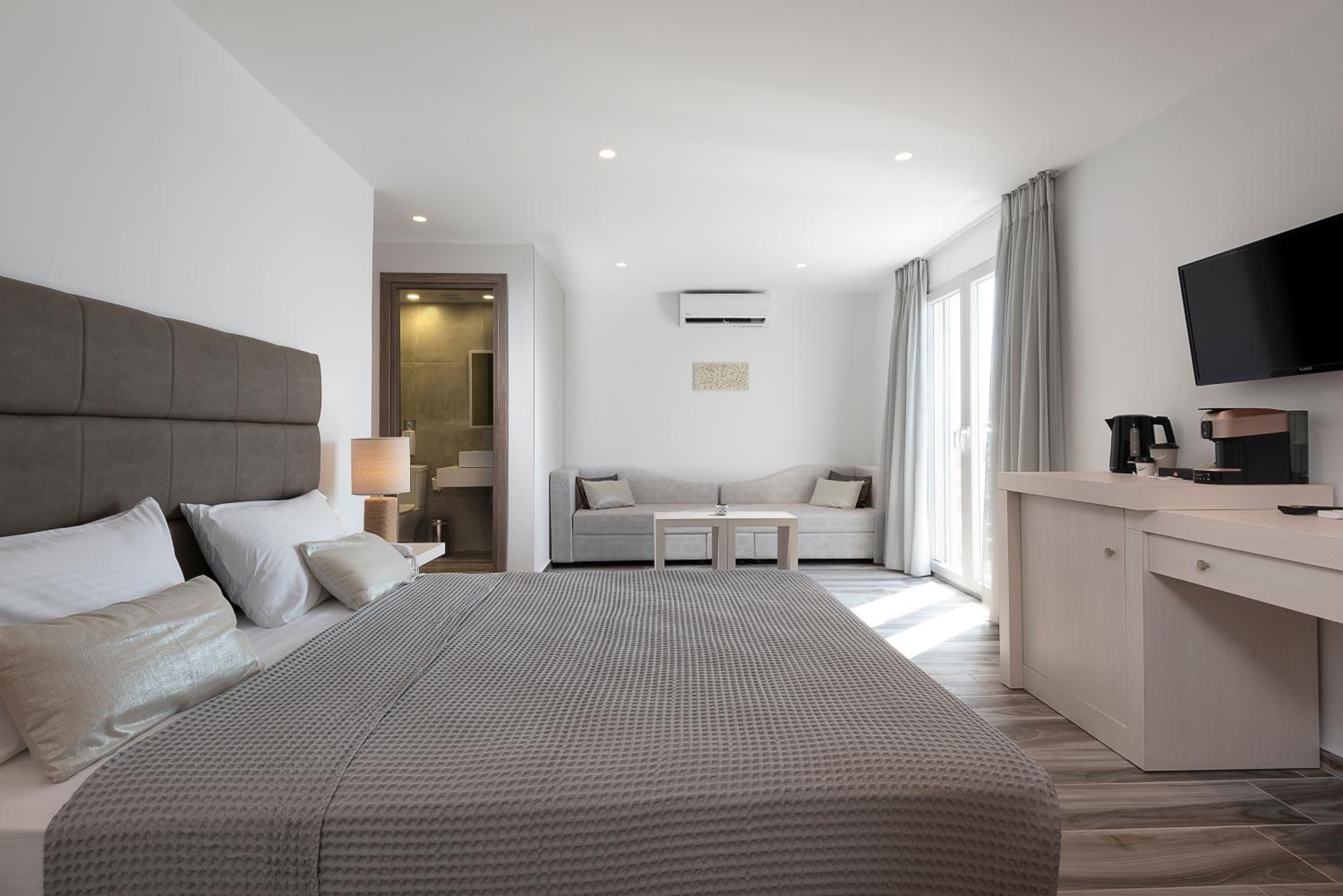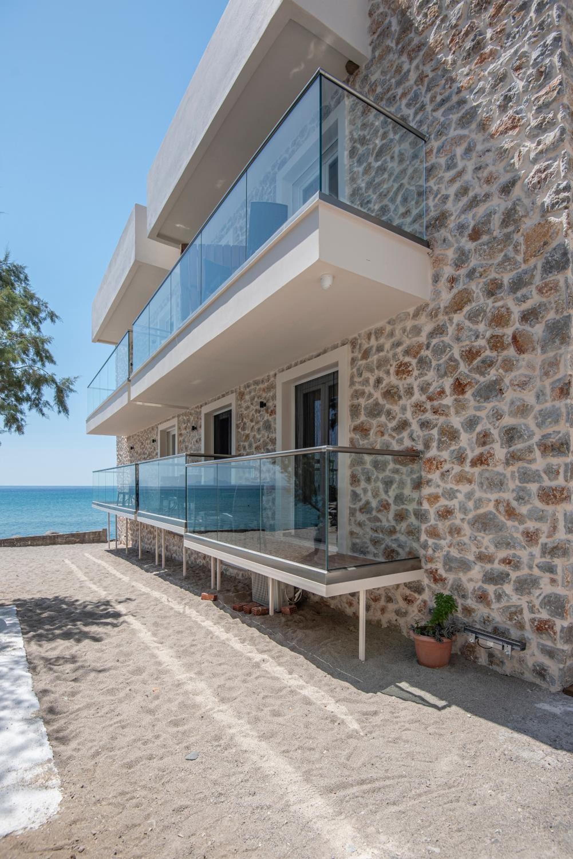 Enjoy breathtaking views of the sea from the comfort of your room at Kyma Rooms & Suites. The private beach area allows you to relax by the water's edge and soak in the tranquil atmosphere.