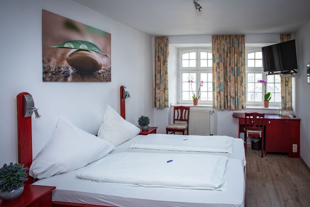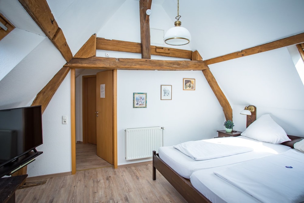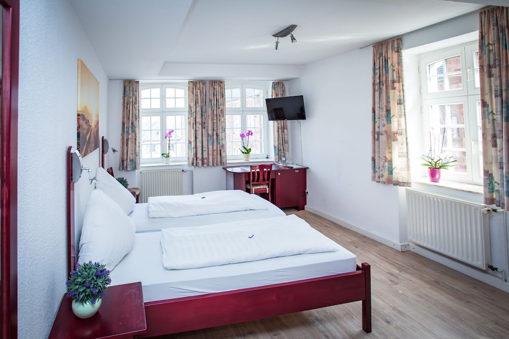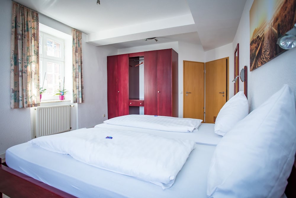 Vor vier Monaten haben wir für eine Nacht ein Zimmer gebucht und bezahlt und wurden bei der Anreise um 19:00 informiert, dass angeblich genau unser Zimmer (es gibt 17) einen Wasserschaden hat und wir aufgrund dessen nicht in dem Hotel Ratskeller übernachten können. Auf meine Frage, warum wir nicht früher kontaktiert wurden, gab es nur eine unfreundliche Antwort, das wir ja 10km weiter in ein Hotel fahren könnten.