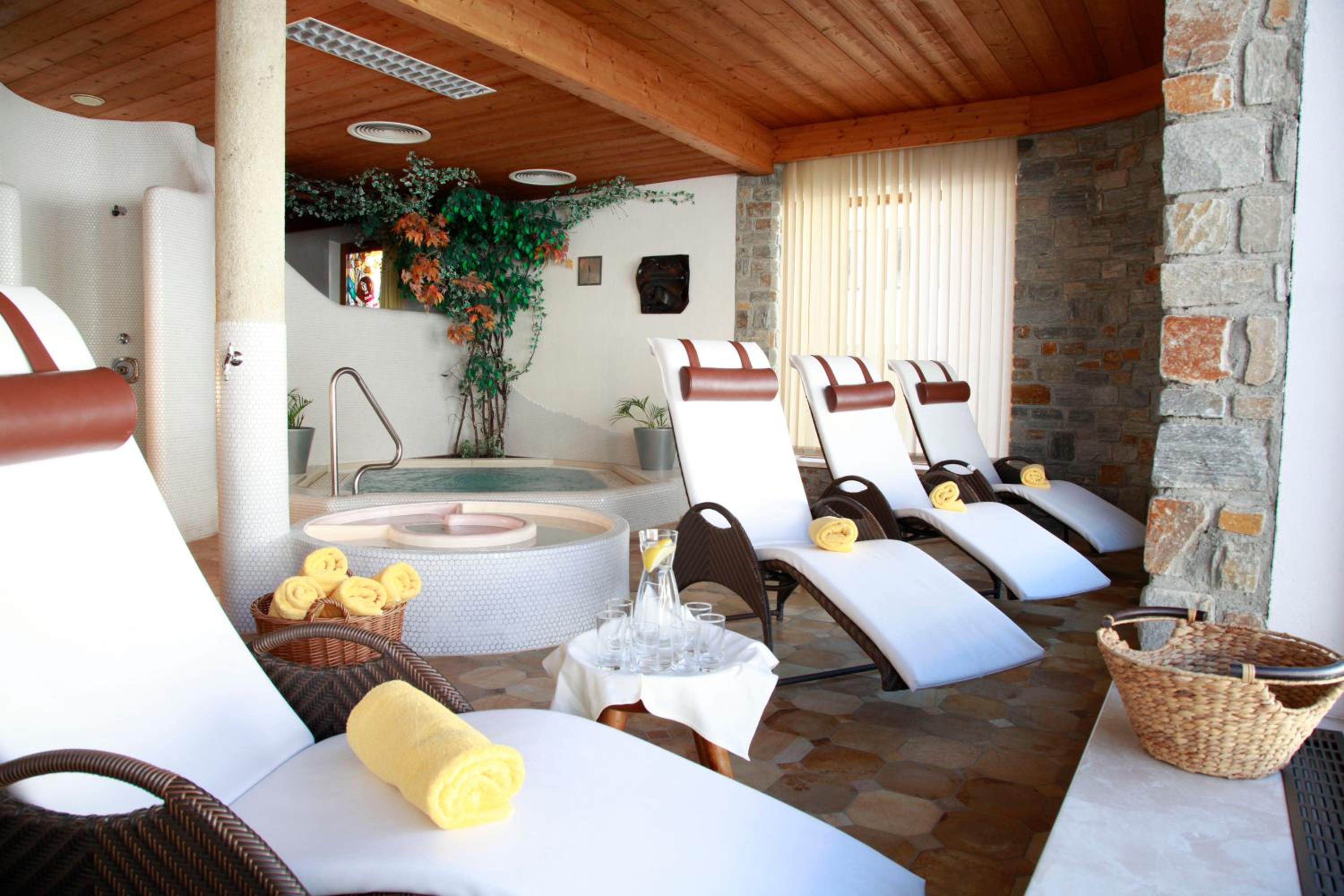 Indulge in a rich buffet breakfast and a delightful 4-course dinner in the elegant dining area or on the terrace with stunning slope views. Unwind in the spa area featuring a jacuzzi, sauna, and steam bath, or stay active in the fitness room and sun terrace.