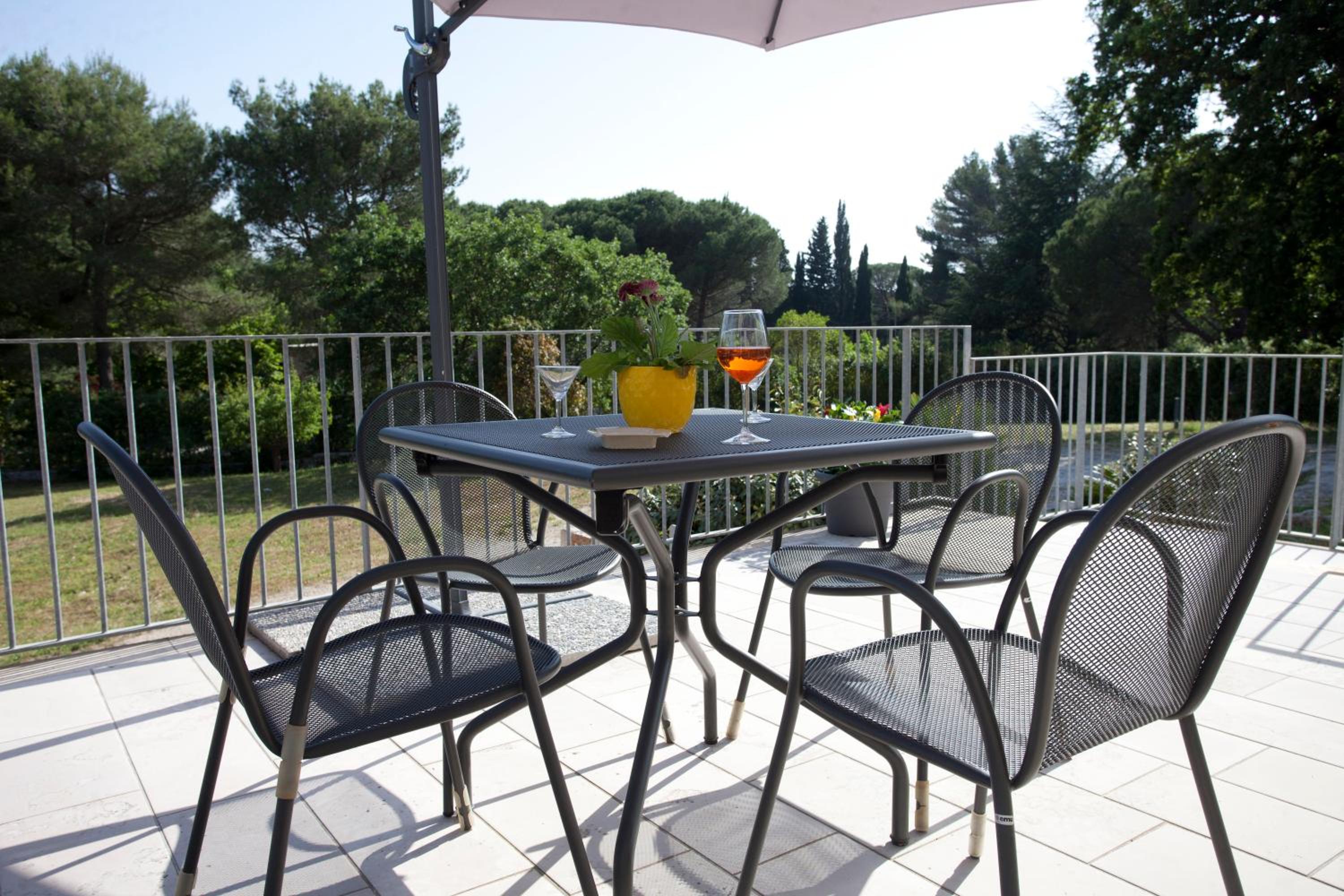 Le cadre de vie, la terrasse et piscine, la proximité du centre du village et la situation géographique du village pour visiter et aller se baigner