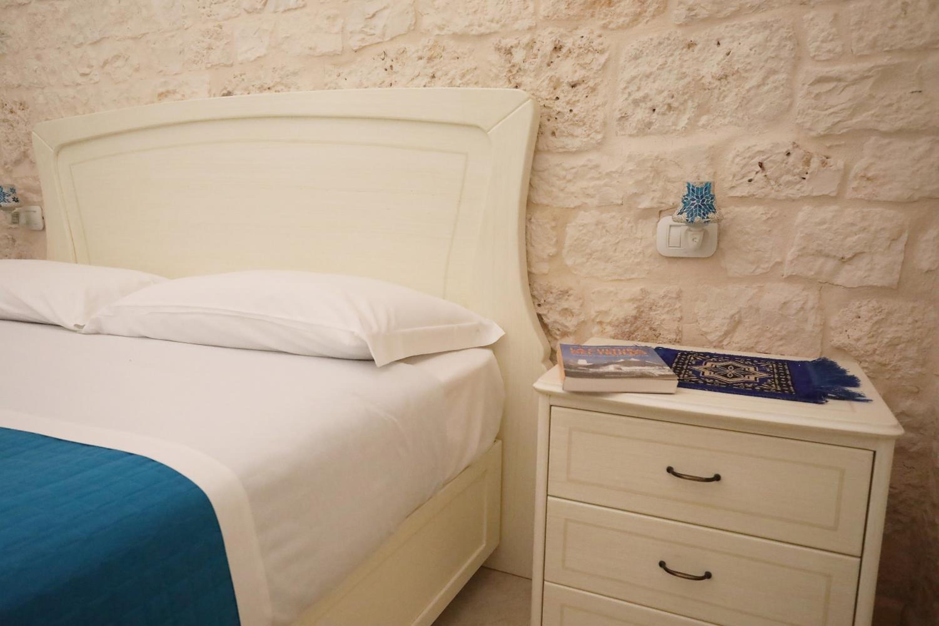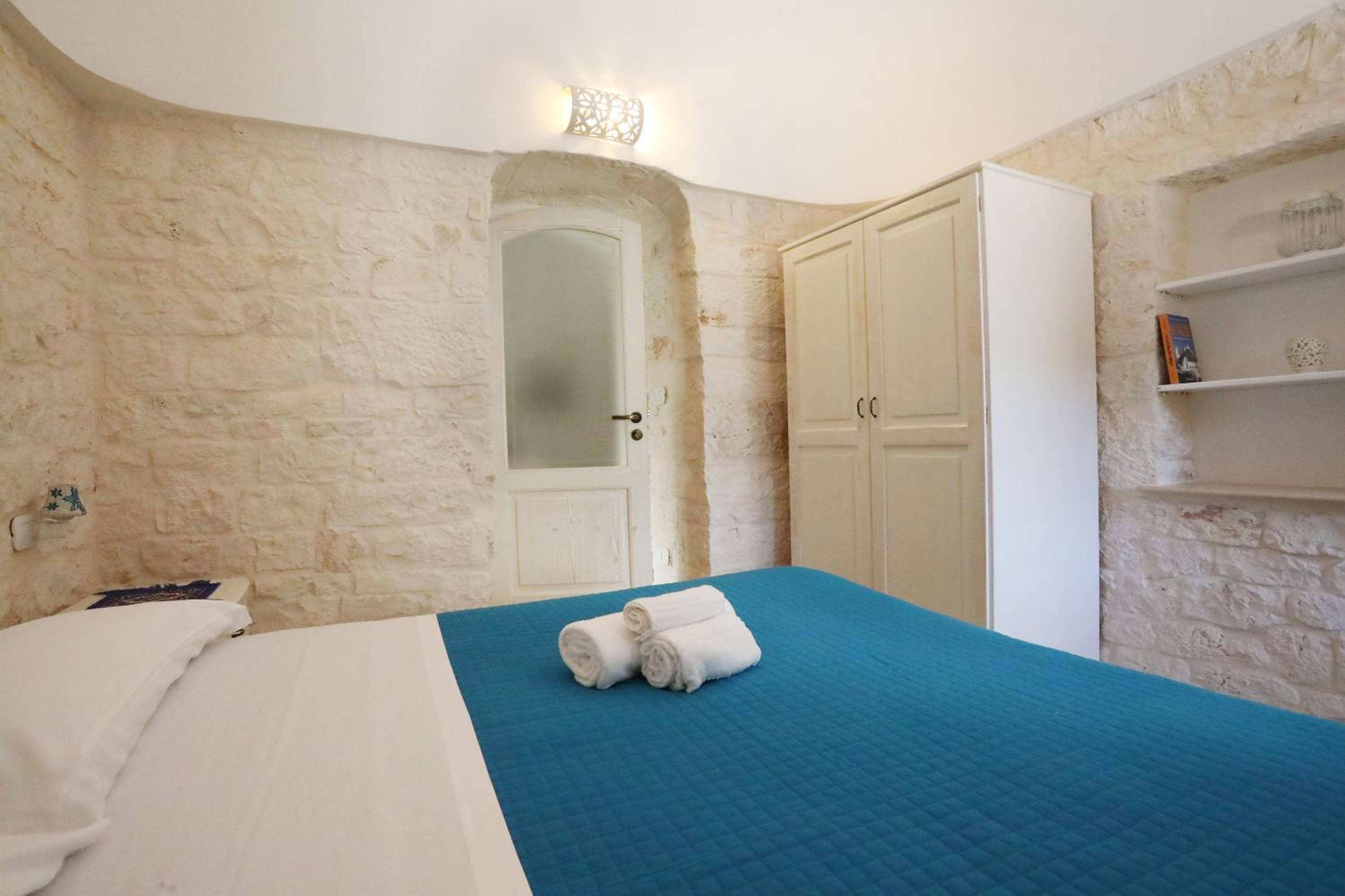 In der Nähe von Kaffeemaschine, Wasserkocher und Mikrowelle gibt es nur eine Steckdose-man kann also nicht alle 3 gleichzeitig benutzen. Durch die Trulli-Bauweise kommt in einigen Räumen kaum Tageslicht (recht düster). Zwischen Wohnzimmer und Schlafzimmer ist eine Stufe- man muss nachts aufpassen.