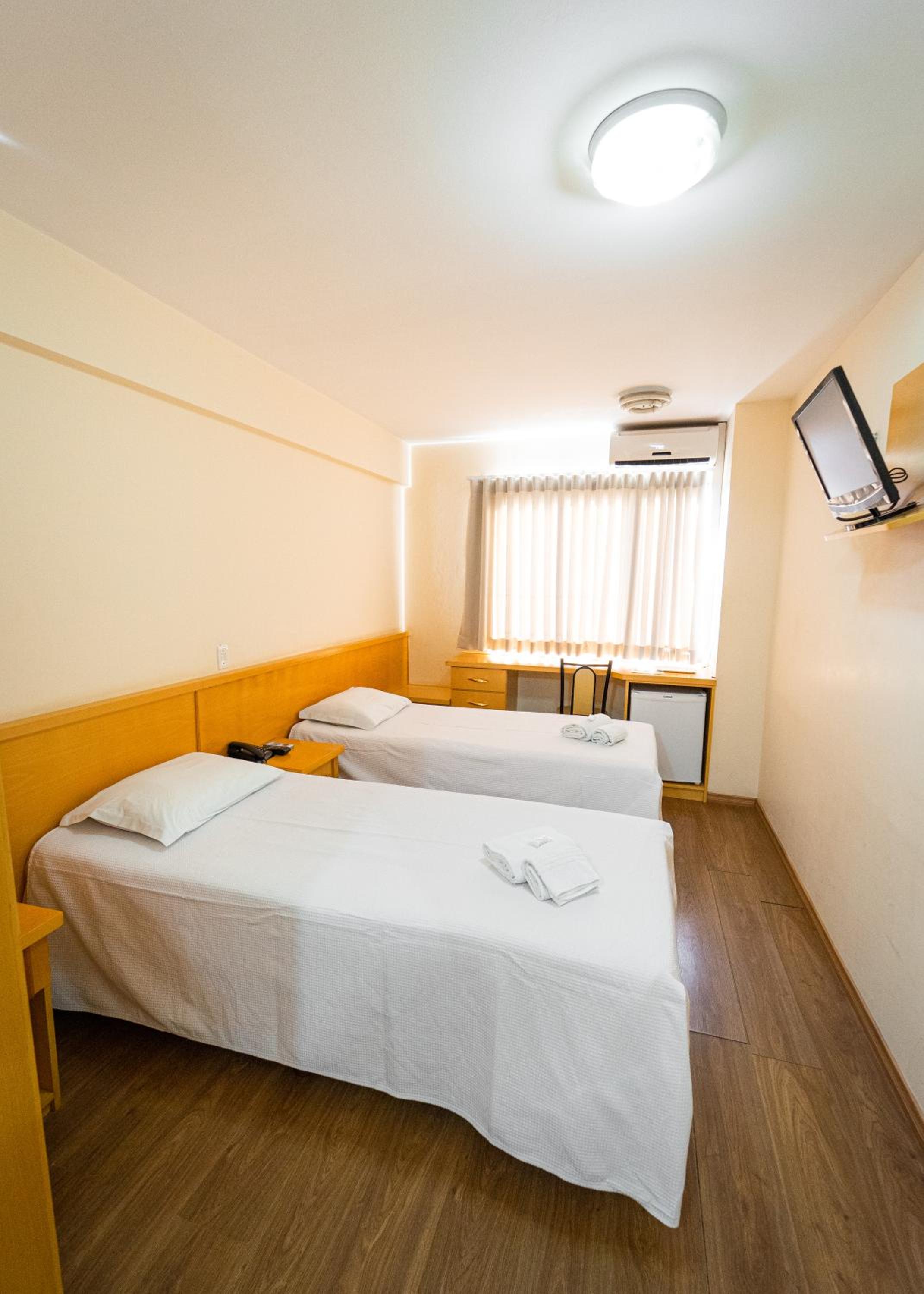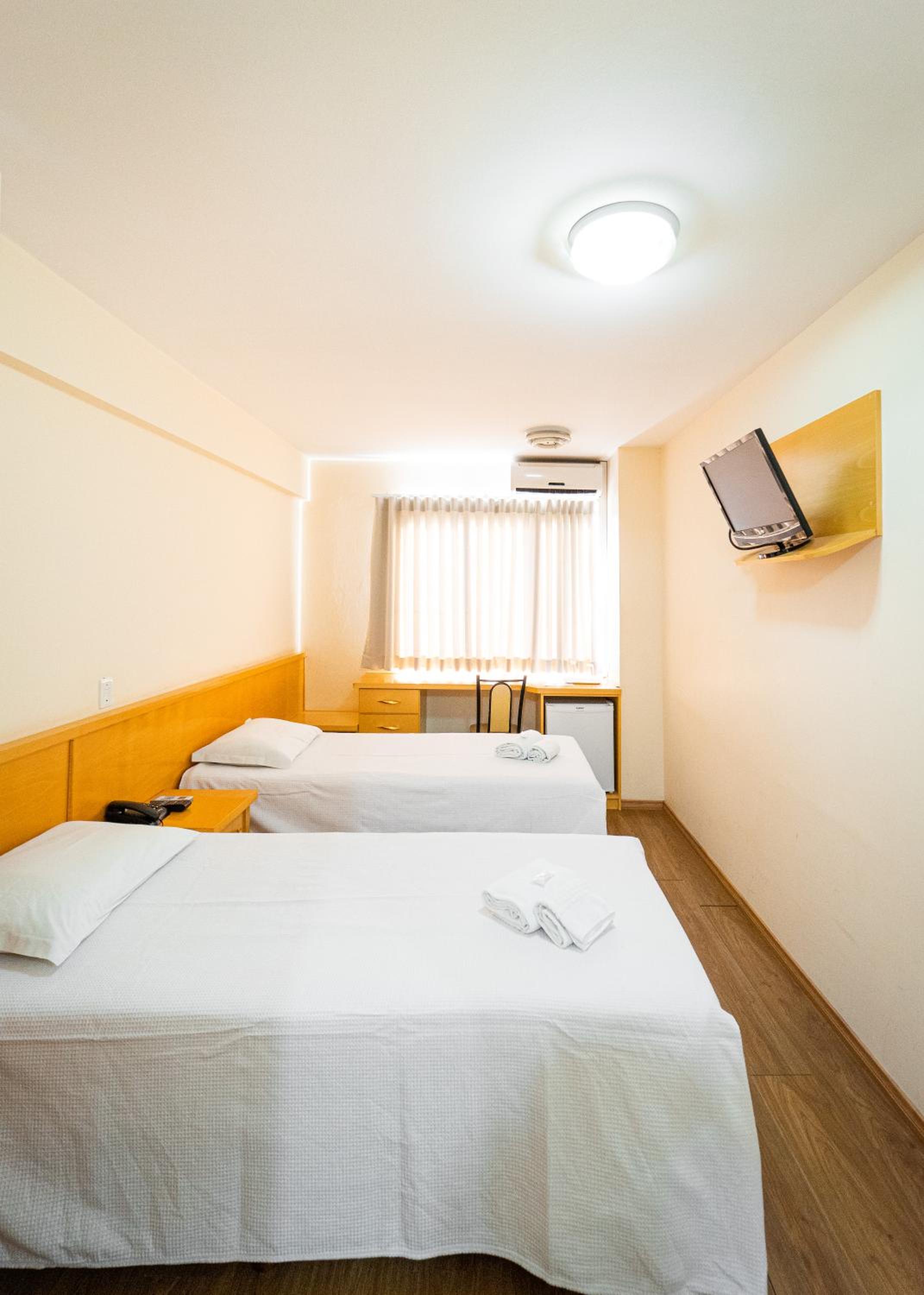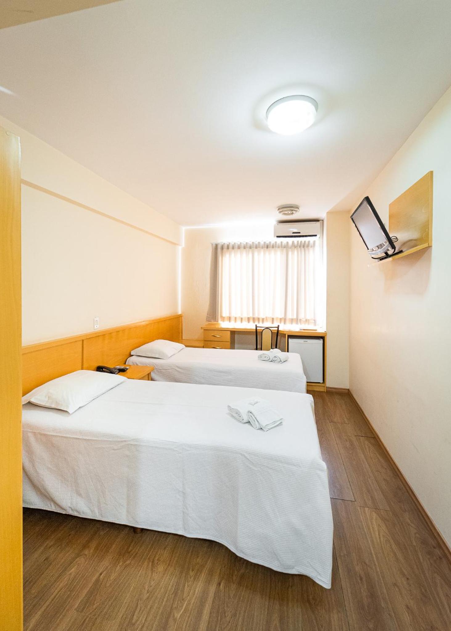 o quarto, a a janela ficava para area interna do hotel,as camas eram colchoes mal adaptados, impossivel nao cair, muito ruim. Pouca tomada para os celulares. a cama de casal so tinha espaço por um lado para entrar, encostada na parede.
