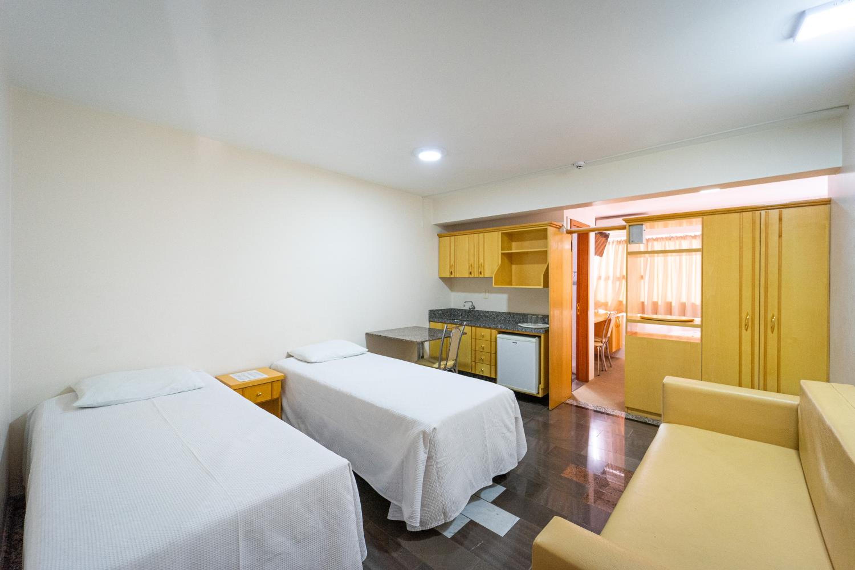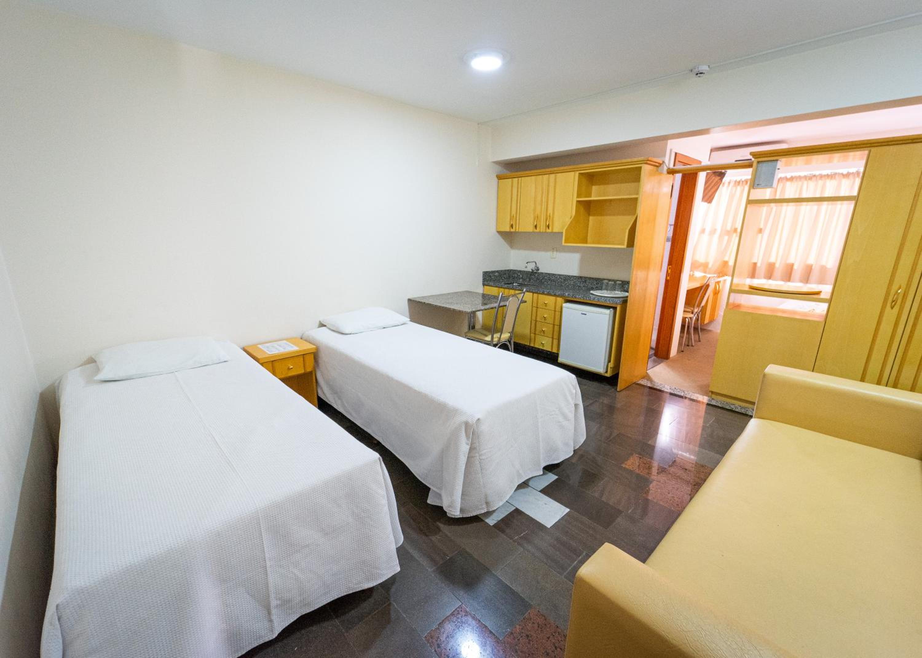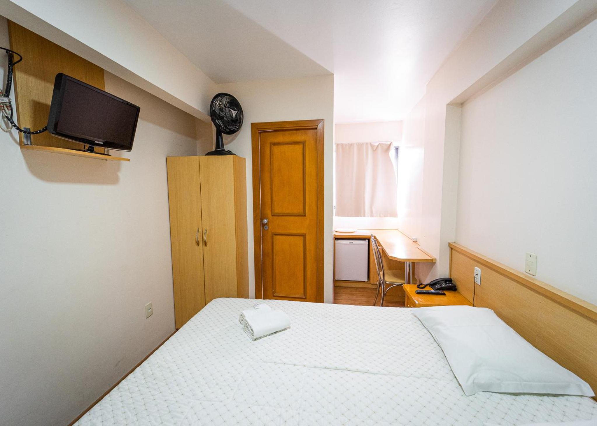 o quarto, a a janela ficava para area interna do hotel,as camas eram colchoes mal adaptados, impossivel nao cair, muito ruim. Pouca tomada para os celulares. a cama de casal so tinha espaço por um lado para entrar, encostada na parede.
