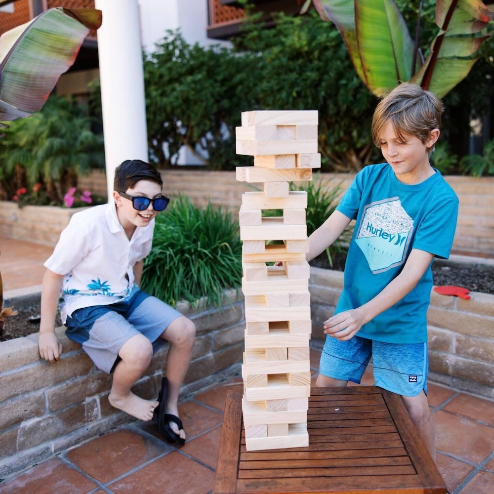 Love this hotel! The king room with kitchenette is very spacious and clean, love their beach services especially because it makes packing for the trip so much easier especially with little ones (the hotel provide beach chairs, umbrellas, towels, and boogie boards!). The lounge areas/patio areas are fun and have a foosball table, ping pong tables, giant jenga & connect four, and even patio tables with fire pits. Such a relaxing spot and great location (in walking distance from a bunch of delicious restaurants, cafes, and dessert spots, as well as tide pools!). The hotel was also able to accommodate our request to stay in a specific room again this year which was a nice plus! The Shores restaurant (located in the hotel) has really tasty weekend brunch options, we were surprised at how delicious everything was & we also got to have a beautiful view of the beach!