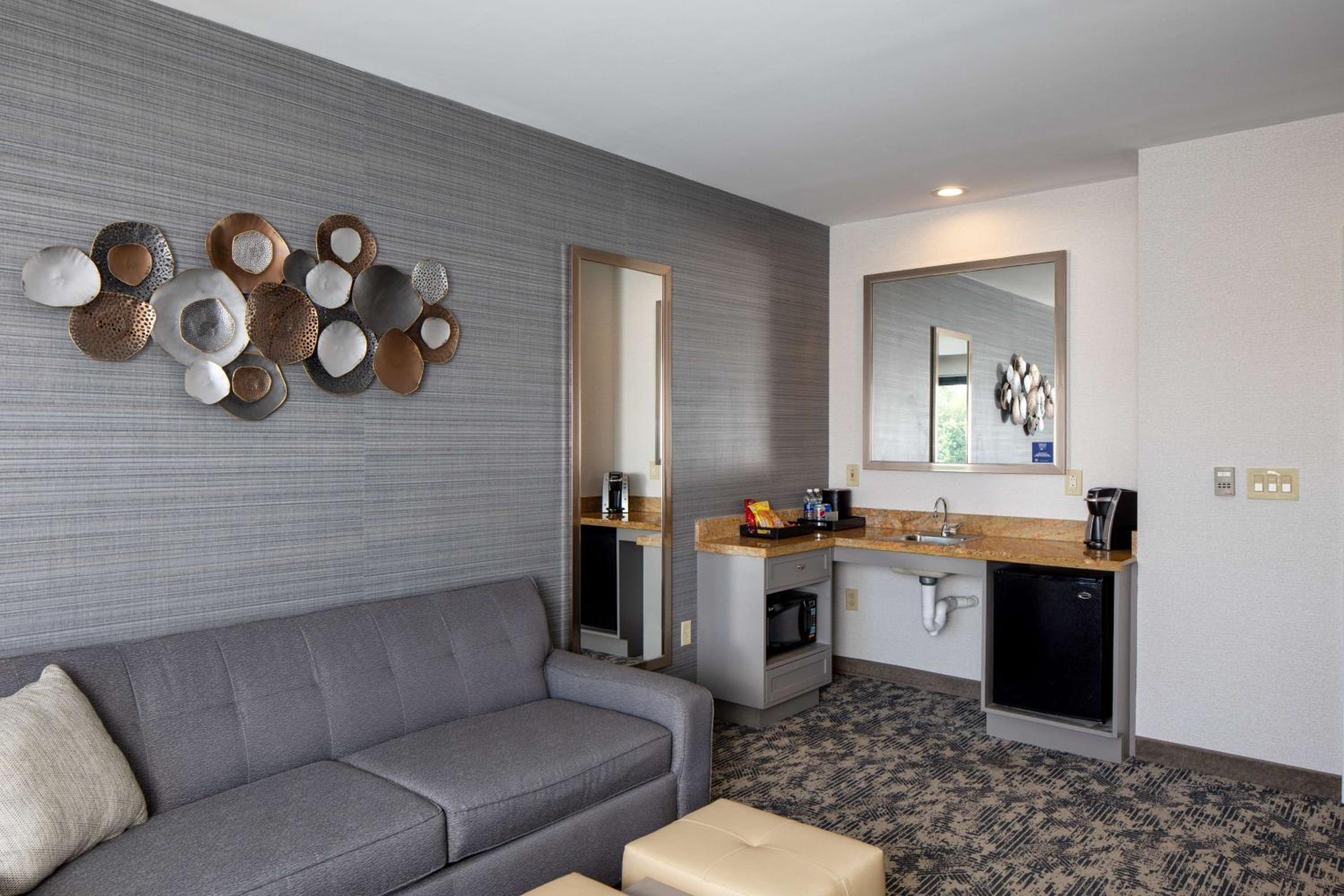 Experience the comfort of two-room suites with separate living rooms and bedrooms, complete with modern amenities like free WiFi and flat-screen HDTVs.