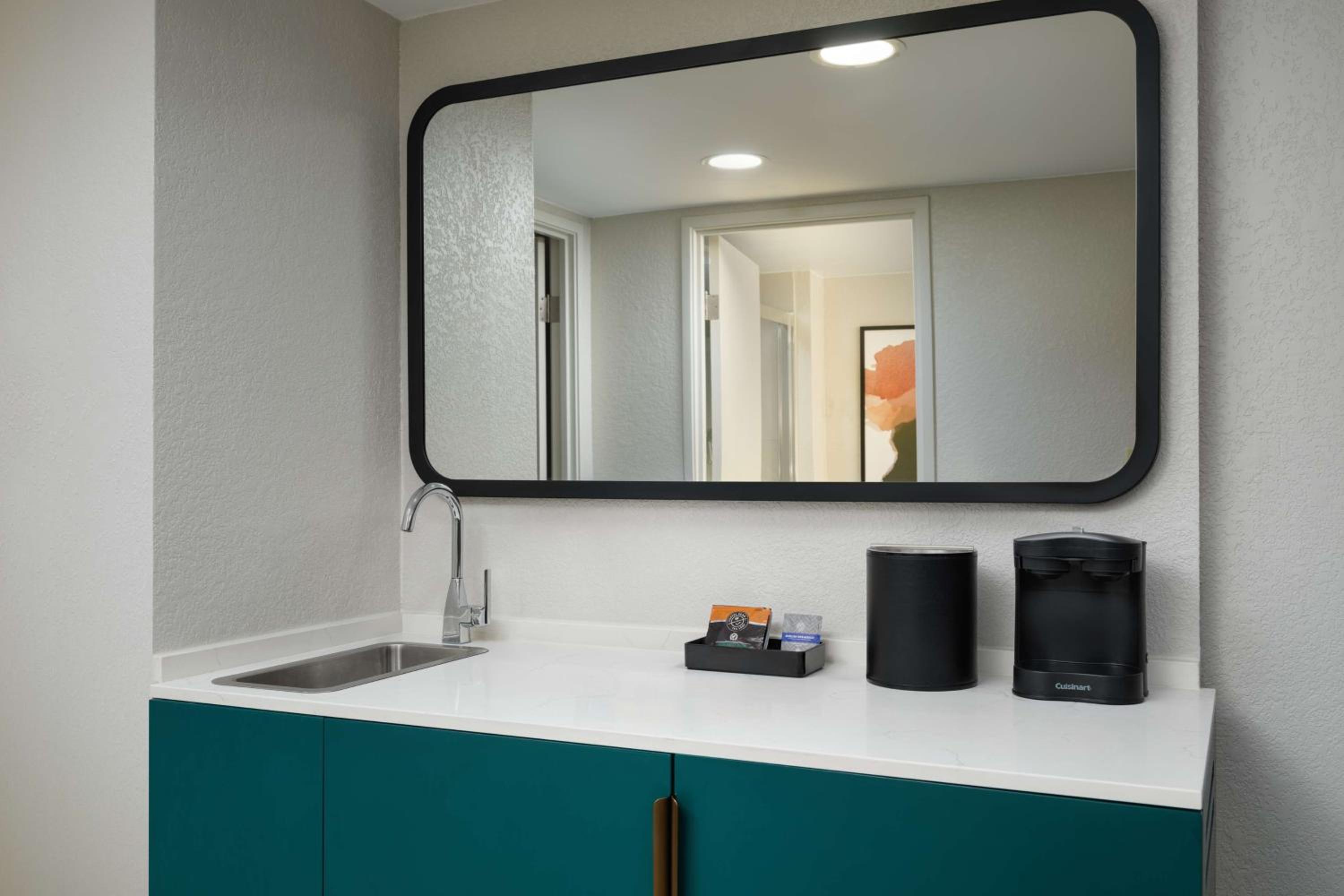 Experience the comfort of spacious suites equipped with two streaming flat-screen TVs, a microwave, refrigerator, and coffee maker. Relax in a cozy seating area with a sofa bed, ensuring a restful stay at Embassy Suites Memphis.