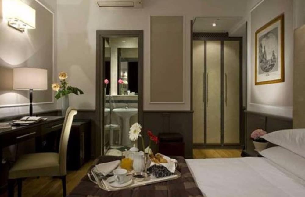 We needed a budget friendly yet comfortable & clean hotel in this specific location. This hotel is a hidden gem. The entire staff is friendly, helpful & eager to help make your stay enjoyable. I had a typical double room while my friend had a single room that, while tiny, had the needed amenities (although the safe in her room did not work). Neat and tidy, spotlessly clean and quiet, considering the neighborhood. We did not opt for the breakfast but saw that it had a nice variety. The only negative is the area tends to attract a mildly unattractive element of squatters or vagrants; they camp out on the steps adjacent to the hotel's entrance. That could be off-putting for some people. But there are plenty of places to eat and drink right in this area and it's very convenient for getting around (Colosseum is in walking distance) plus there are multiple stores, shops, pharmacy, etc, right there. Although located on a side street off the main road (via Cavour), our transfer vehicle had no issues pulling right up to the front door to collect us for the airport. I would recommend to anyone looking for a very nice accommodation, at very attractive prices, for a few nights. Rooms are smallish, even my double and, as I said, the solo room for a single traveler is very compact; so bear that in mind. You're not getting the spacious room that American's tend to expect; you're getting a clean and comfortable boutique hotel with an excellent staff who value you as a guest.
