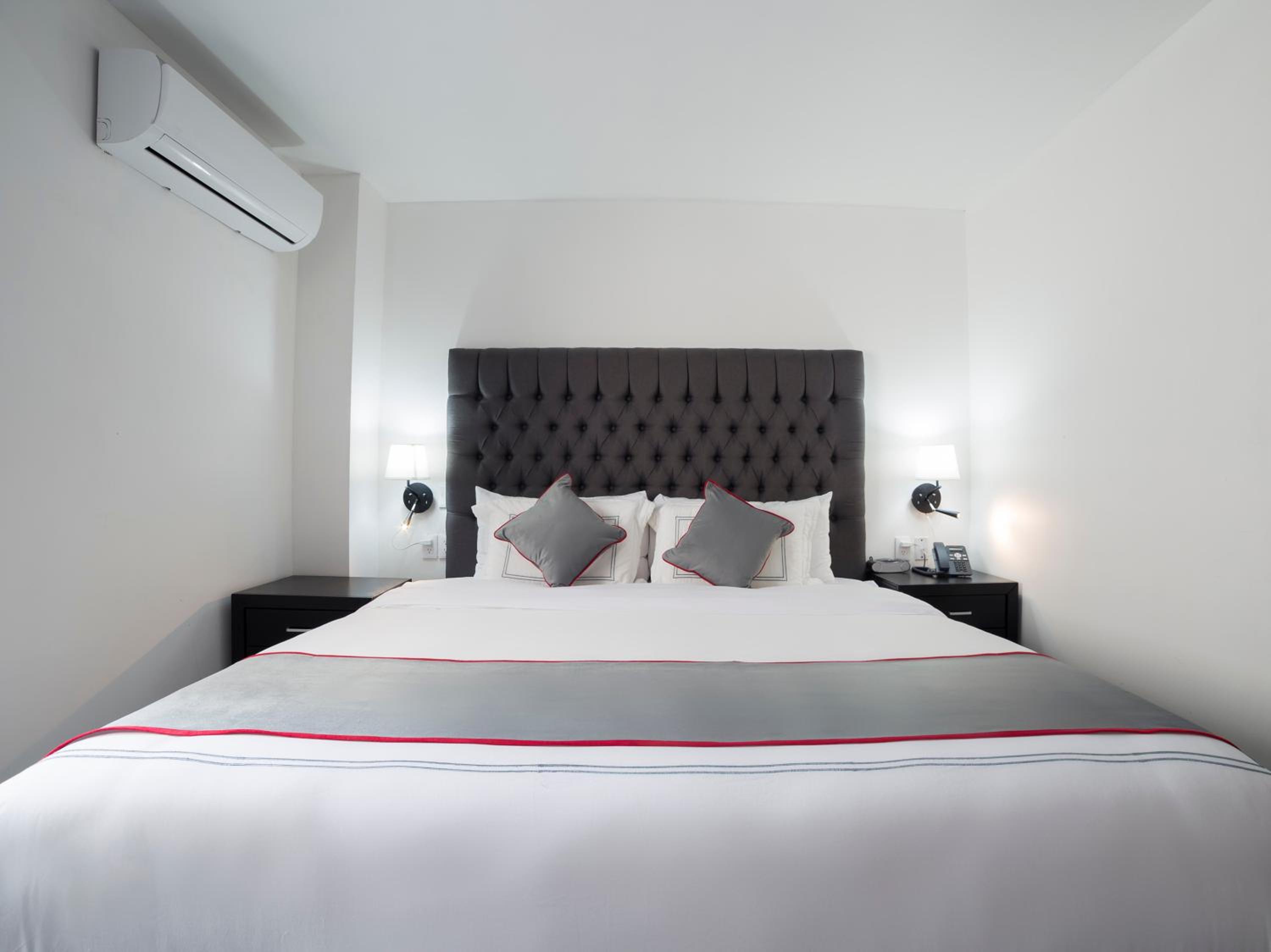 Experience comfort and convenience with our air-conditioned rooms equipped with essential amenities including a desk, coffee machine, safety deposit box, and a flat-screen TV. Stay connected with free WiFi and enjoy a relaxing shower in the private bathroom. Our 24-hour front desk and room service ensure a seamless stay.