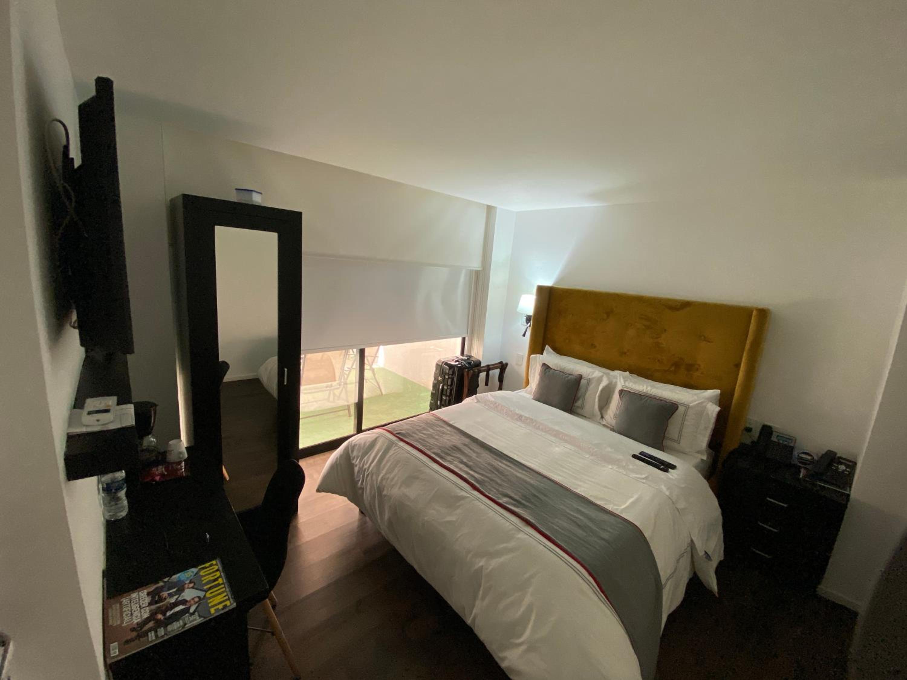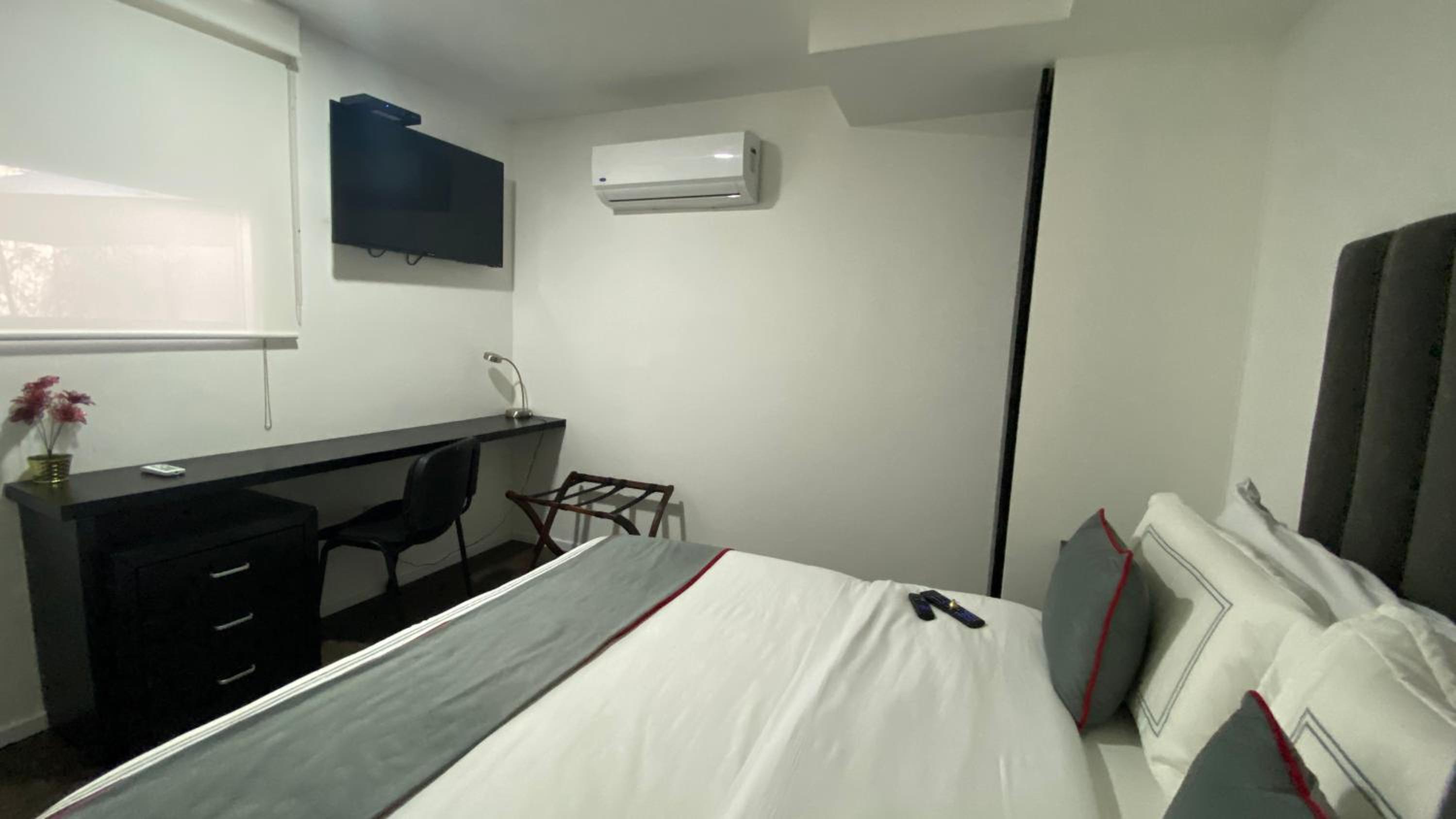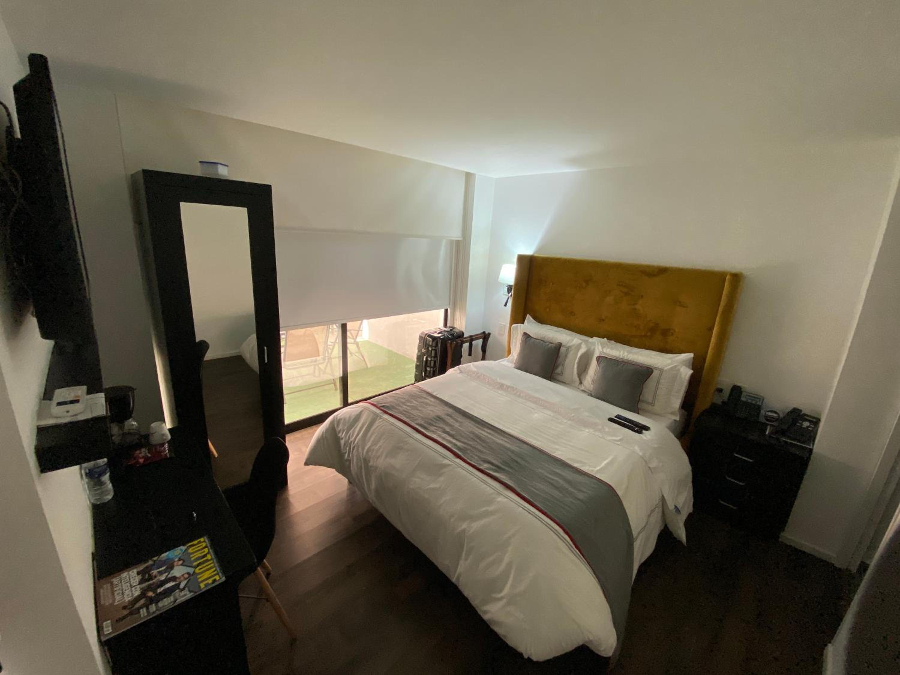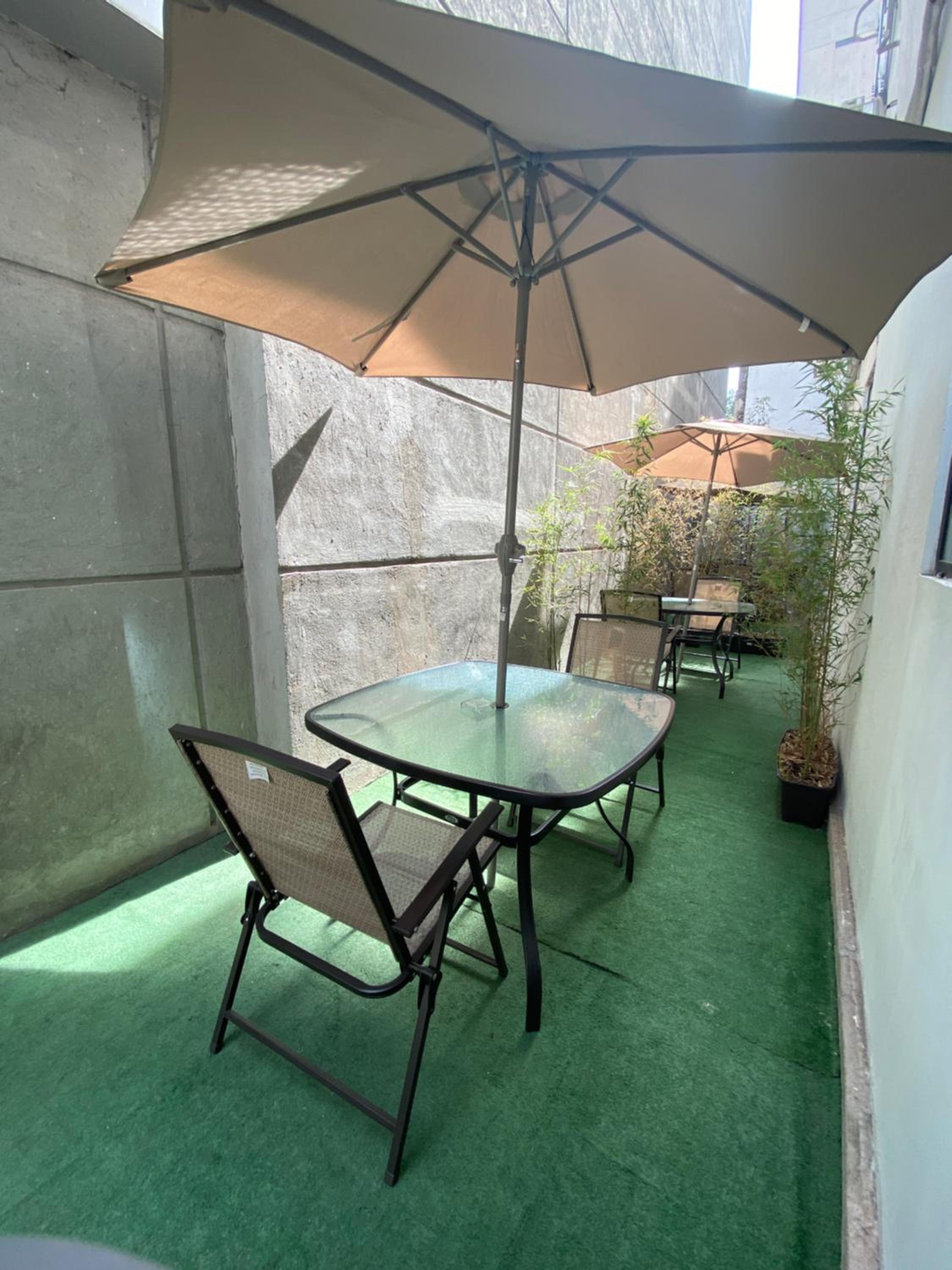 The pictures are misleading! The room was clean but if you have luggage, you will have a difficult time as the room can barely accommodate the furniture it has. The terrace has no view and offered no benefit to renting the apartment. There is a rooftop bar which played super loud music the whole night we were there on a weekday and there wasn’t really a room you could be in where you wouldn’t be affected by hearing the music. For us, it made for an uncomfortable night as we couldn’t sleep through it. Something you may want to consider when renting here if you are a light sleeper.