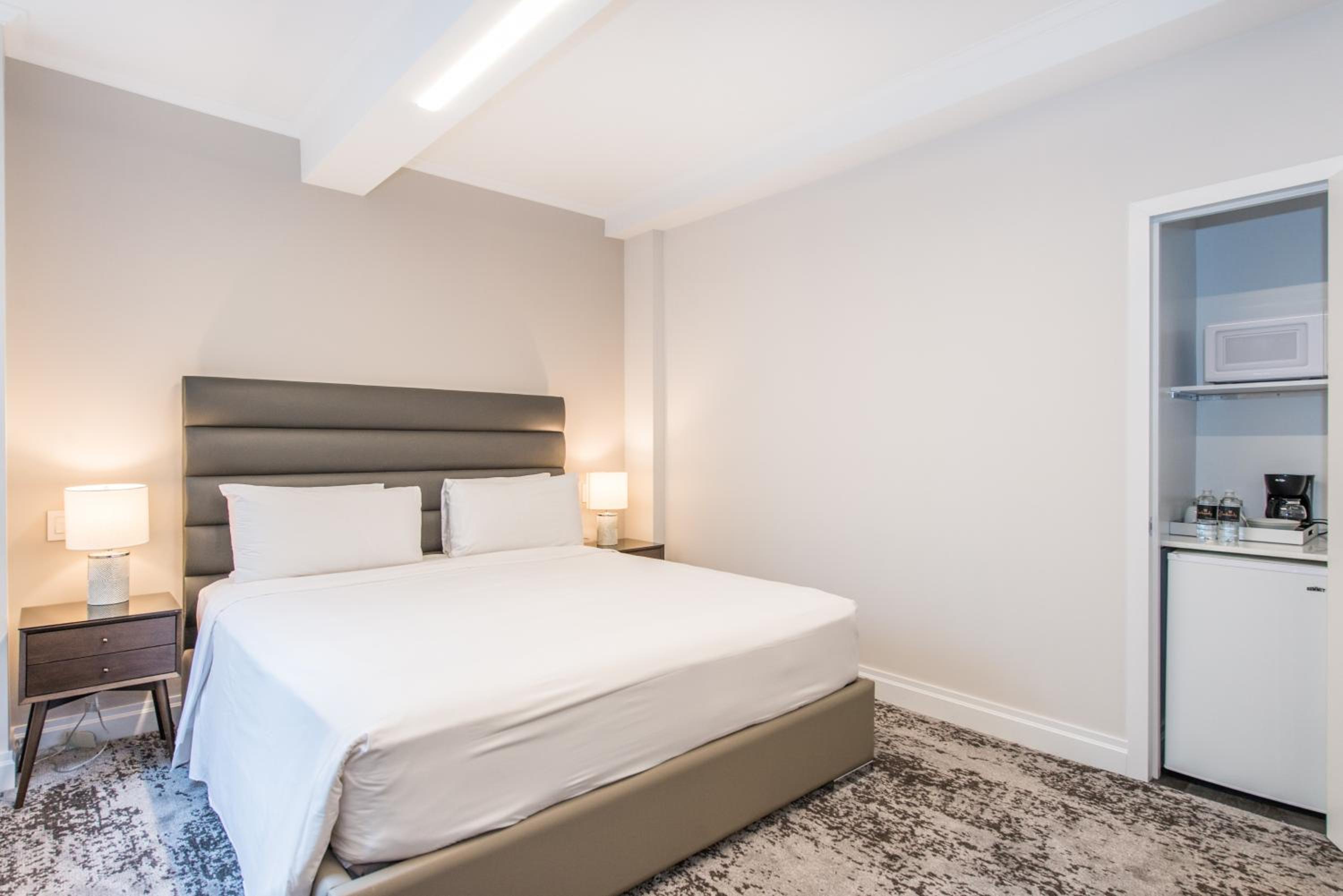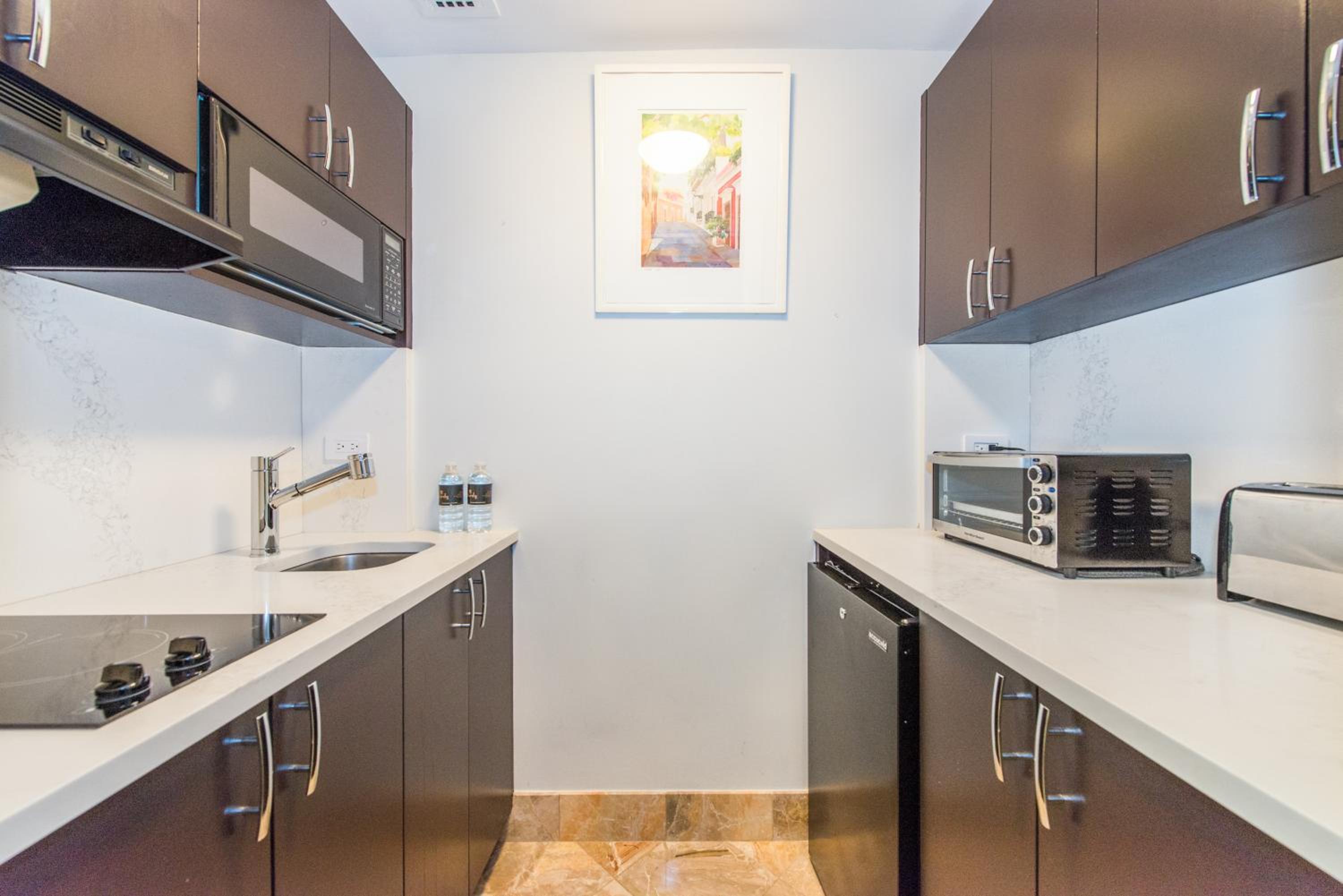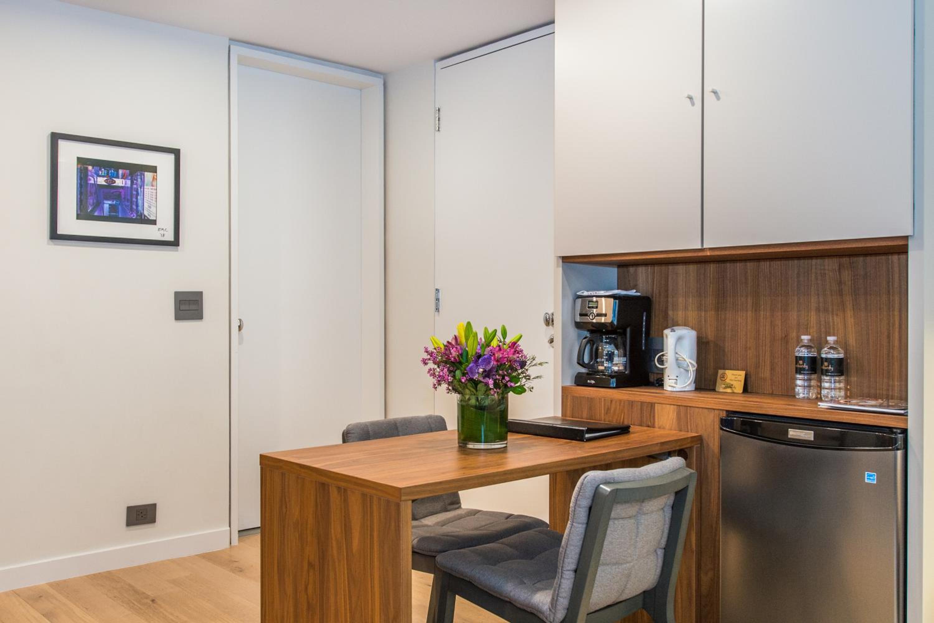Large and comfortable room with a nice kitchenette area including espresso maker and pods, mini fridge, microwave and sink (with window). Great east side location.