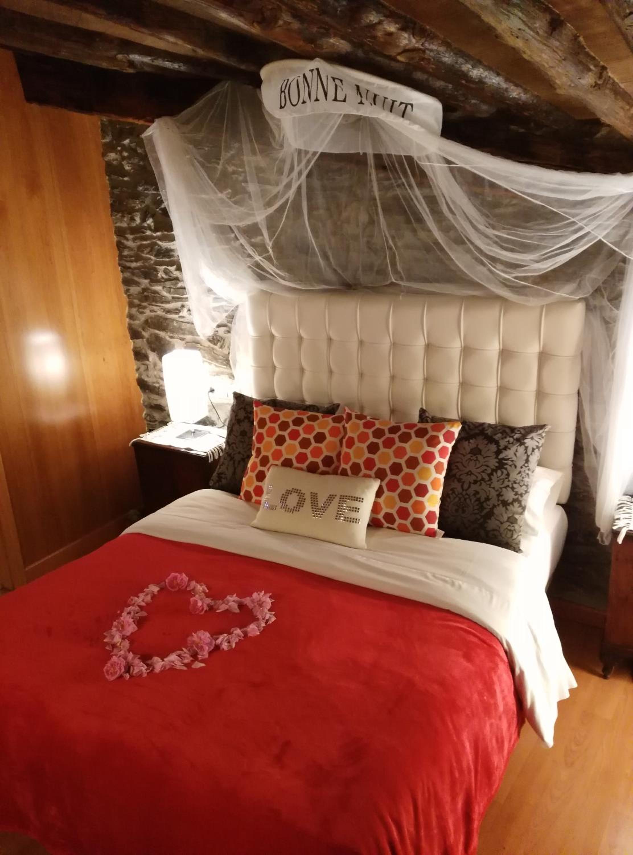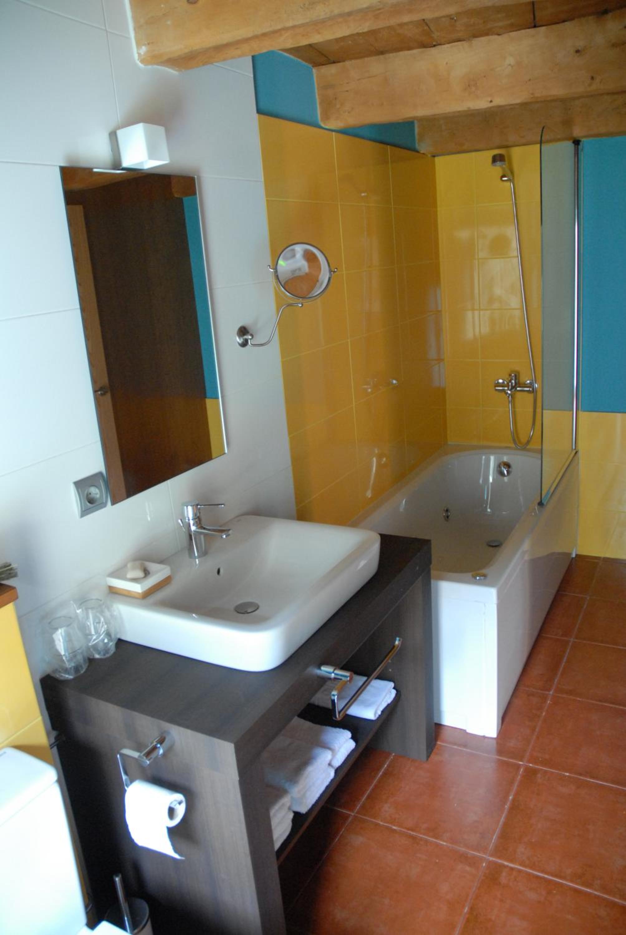 El encanto de la habitación decorada con mucho gusto. Su aspecto rural con una comodidad excelente. El baño con bañera de hidromasaje.