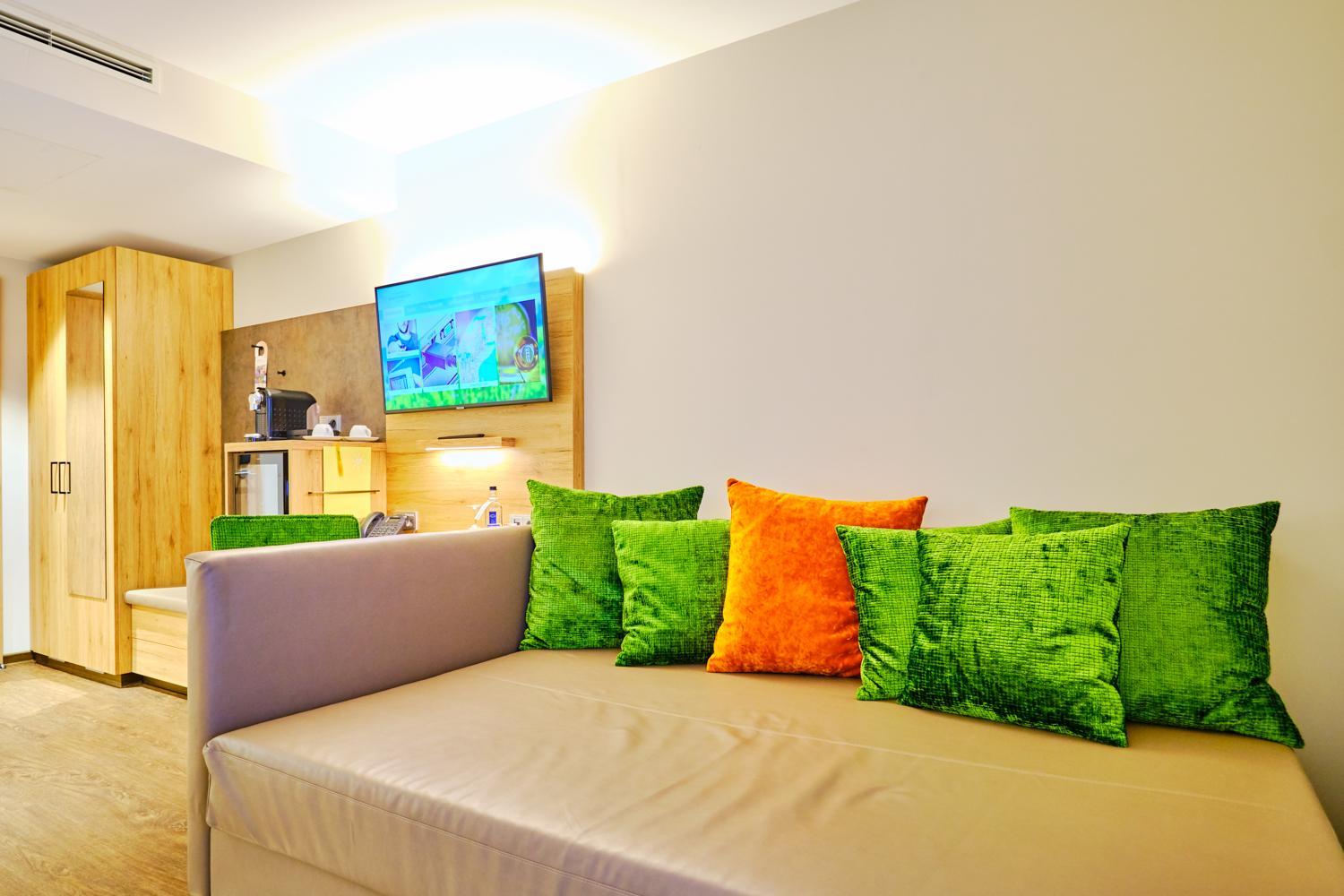 -Kein zentrales Deckenlicht. Dadurch Zimmer für meinen Geschmack etwas zu dunkel.