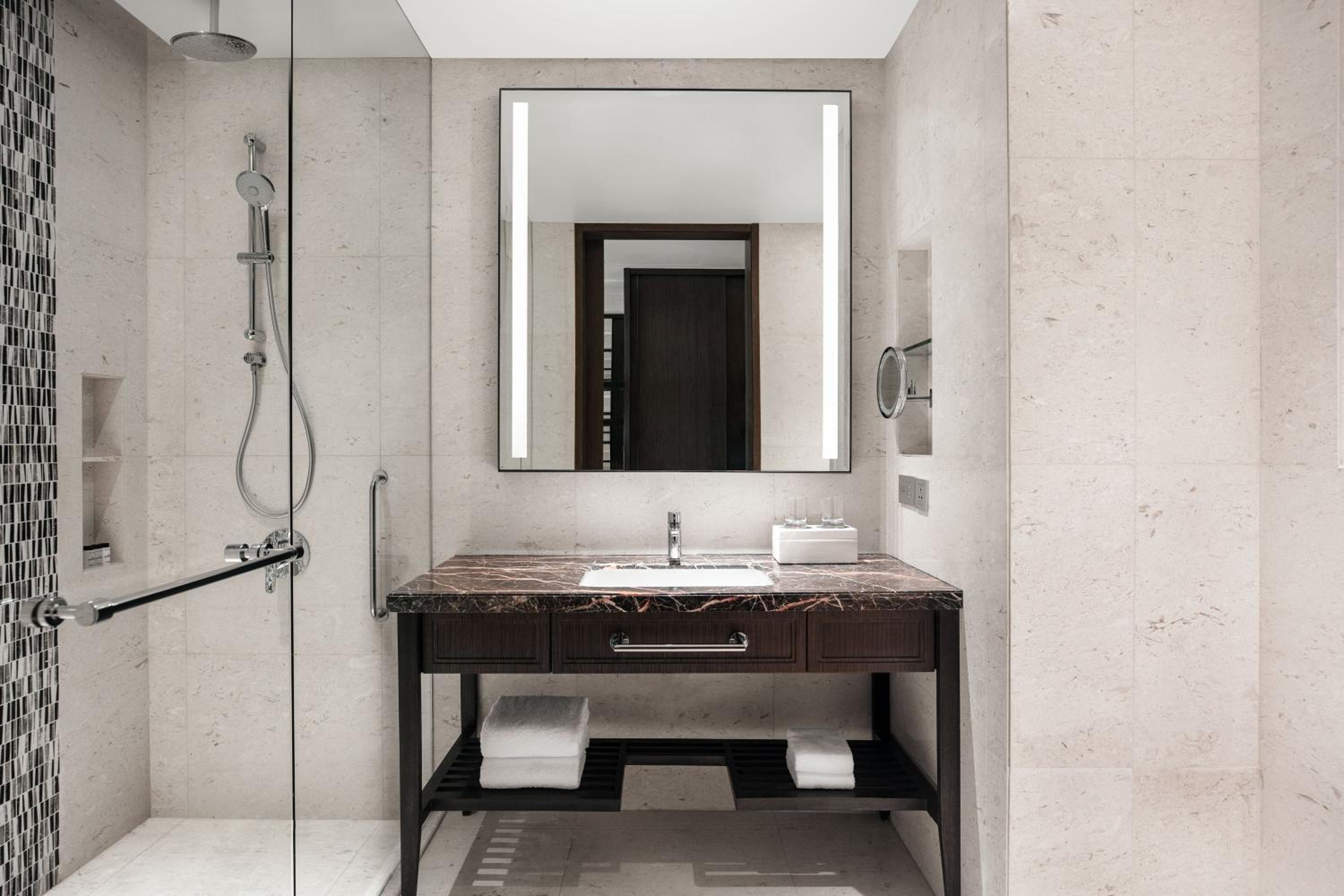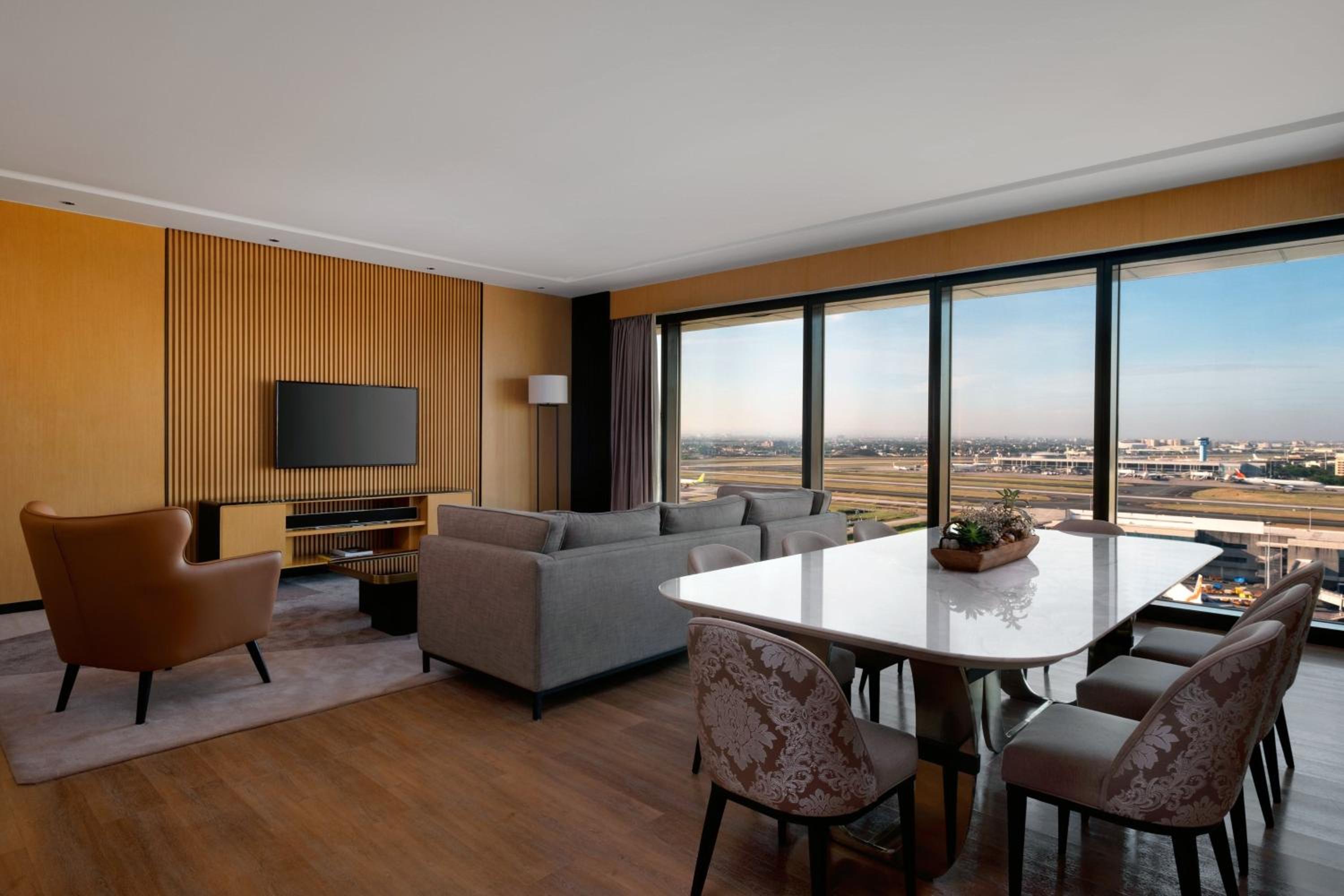 Indulge in 5-star luxury at Sheraton Manila Hotel, where every guest room is elegantly designed with modern amenities, including a flat-screen TV, plush seating area, and a private bathroom for your comfort.