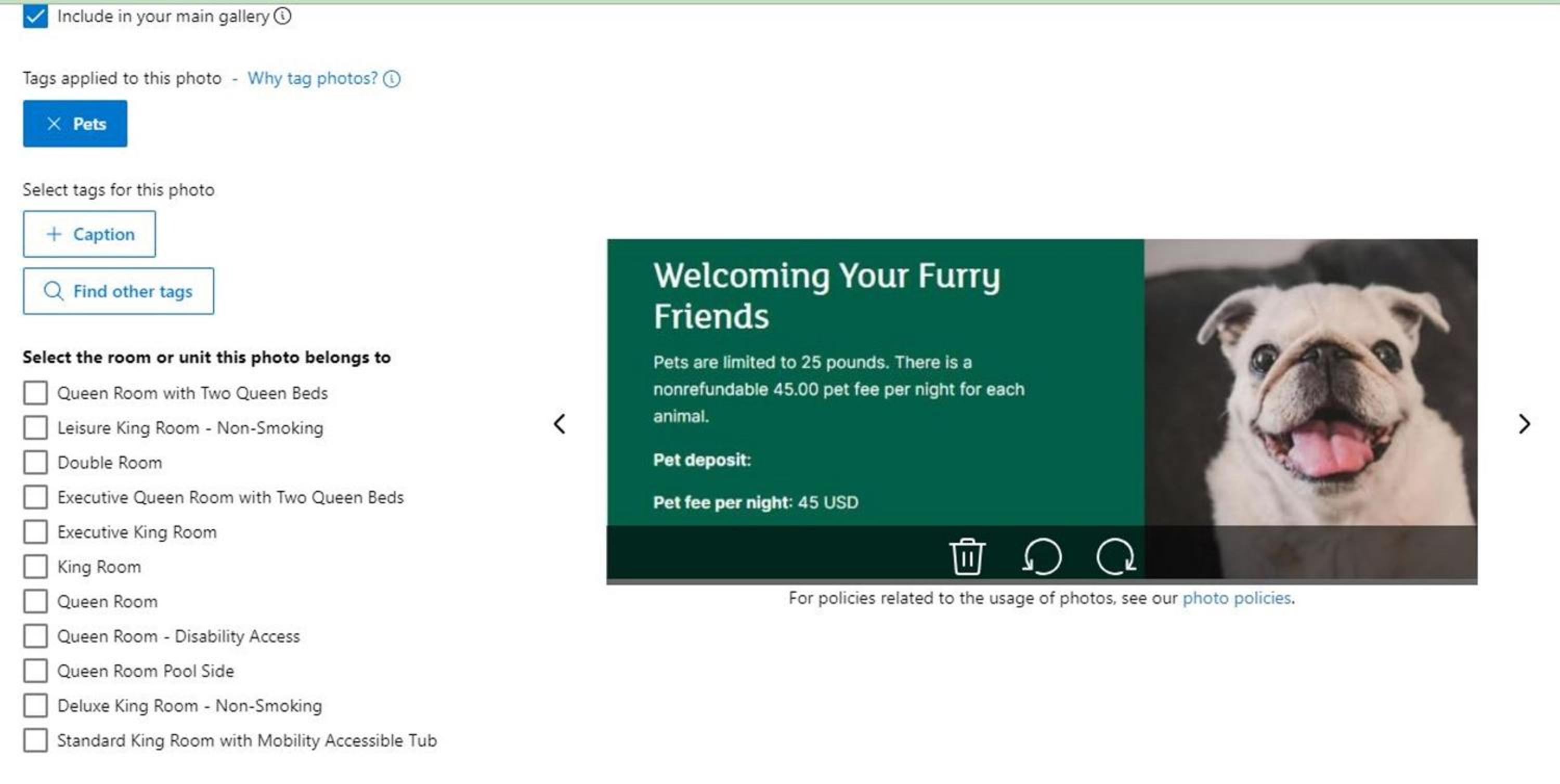 Please note that only pets under 11.33 kg can be accommodated. Contact property for details.