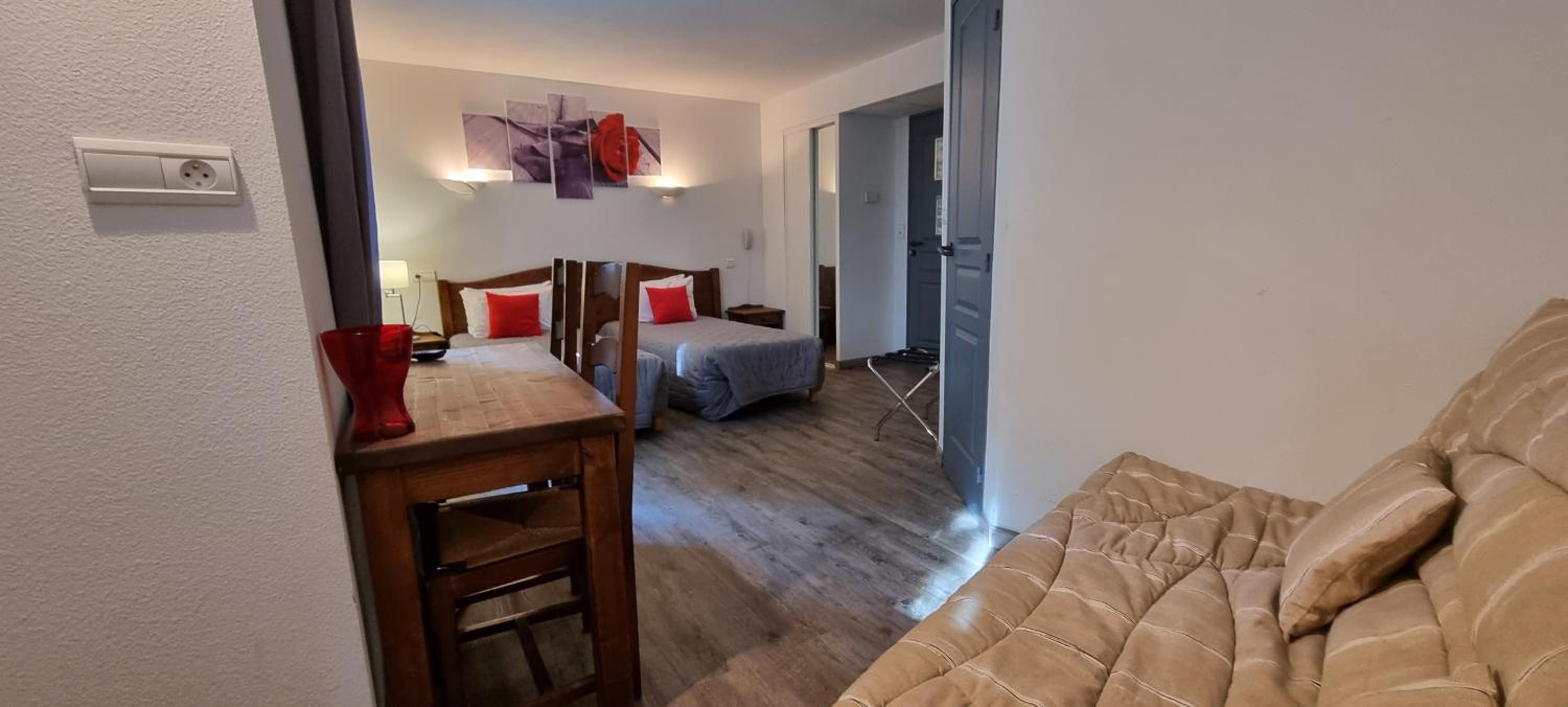 L emplacement, le cadre joli jardin, la taille des chambres, propreté maximum, qualité de l accueil . Merci pour le surclassement !