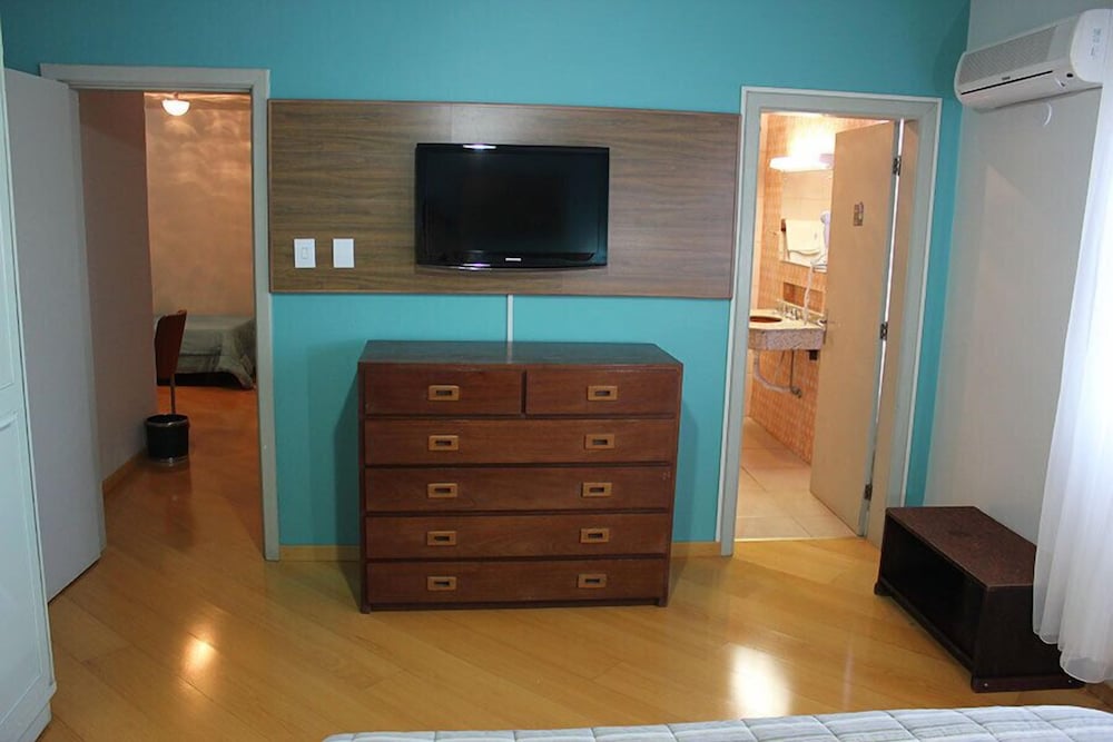 Hotel com ótima apresentação no acesso , porém quartos antigos TV de tubo,com meia duzia de canais.O atendimento das duas Senhoras da recepção foram bons, porem o Sr."Dono do Hotel" ,como ele quis afirmar varias vezes , não teve cordialidade e desconhecimento sobre a Hotéis .com.