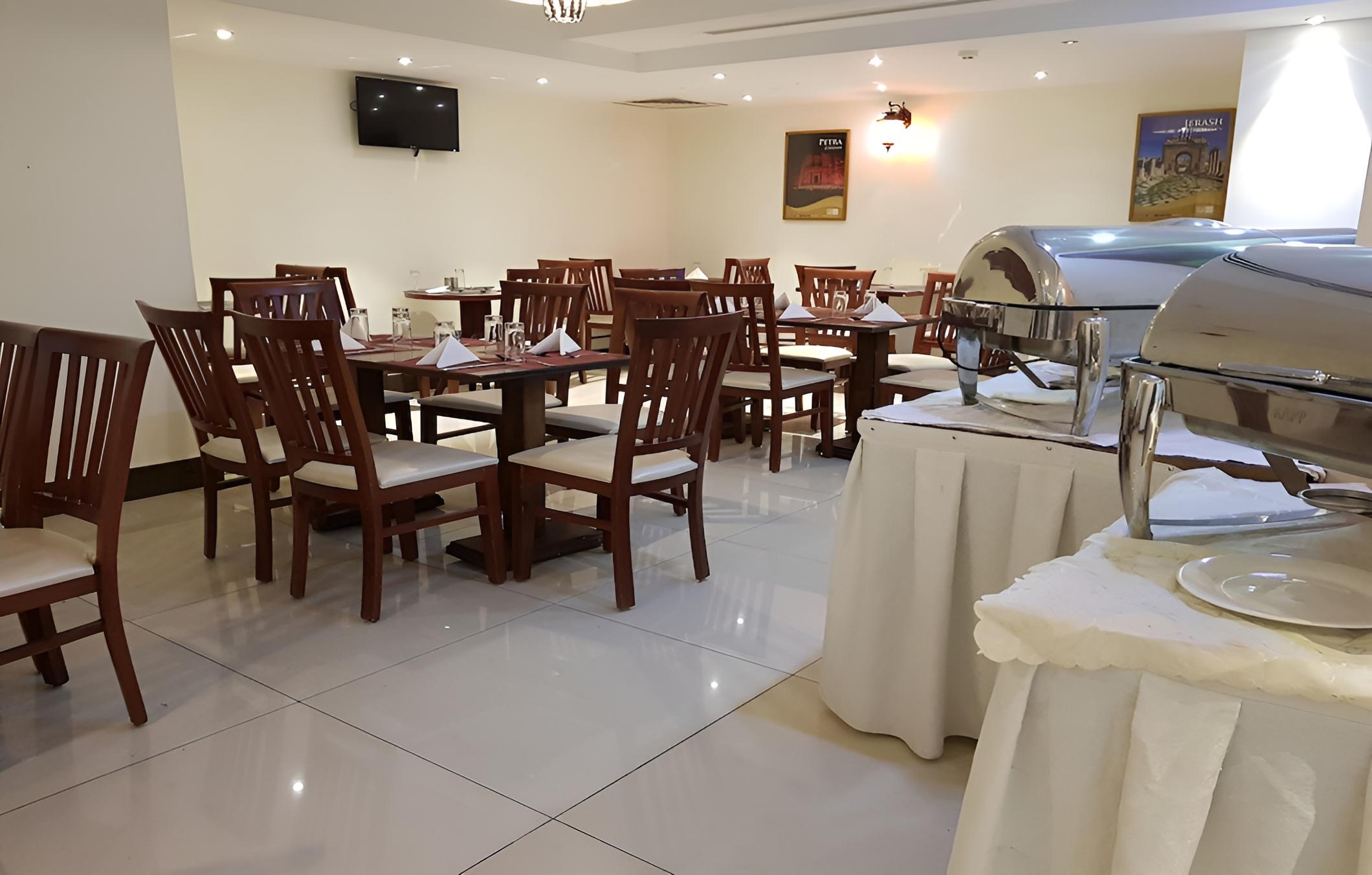 Exceptional clean rooms. The whole building seems to be quite new. Basic breakfast but absolutely satisfying. Nice interiors in the rooms and lobby. Since it is not located in the center, parking has been not a problem at all. I would say one of the best hotel in terms of price-performance ratio we had during our visit in jordan.