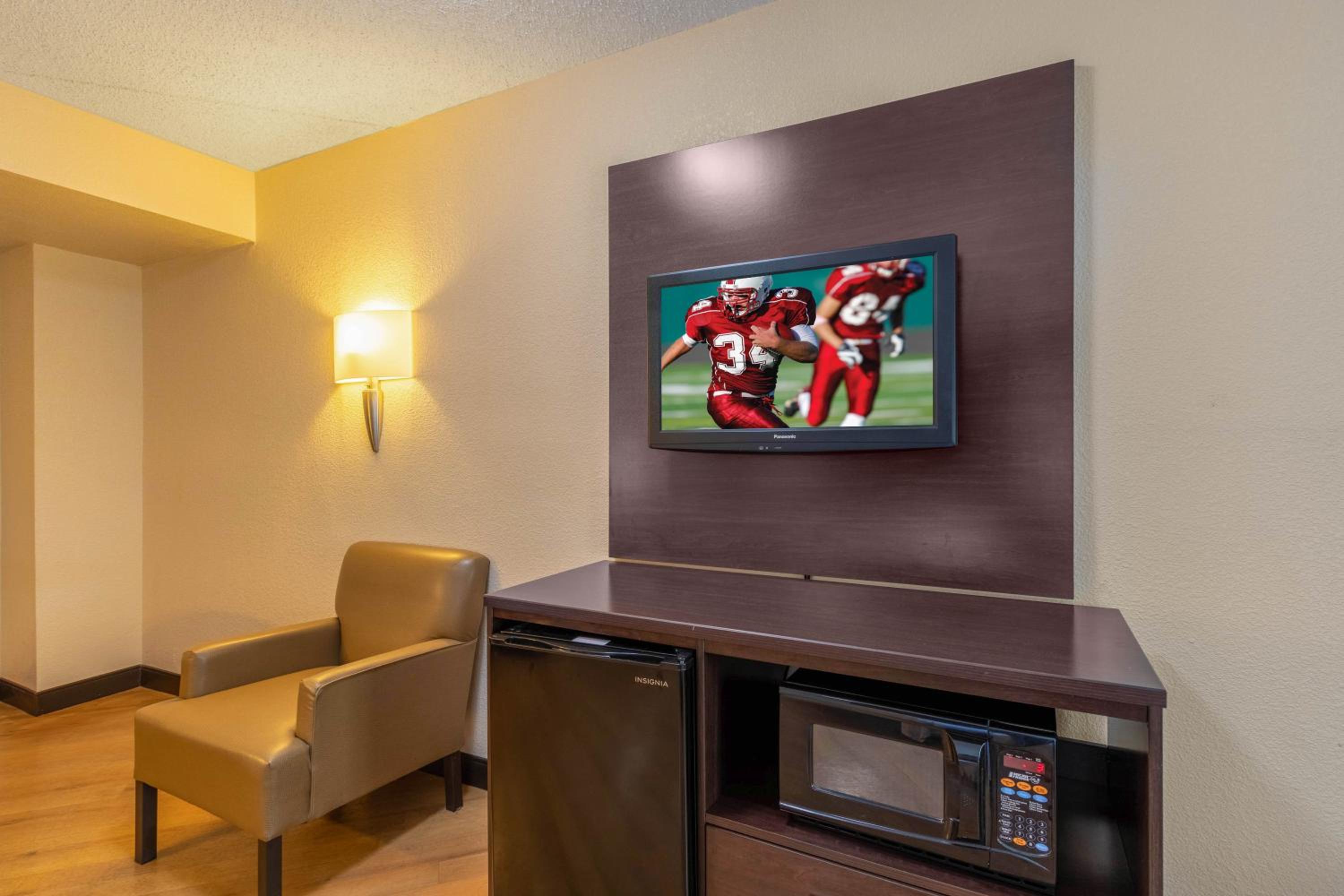 Modern Amenities: Enjoy a comfortable stay in air-conditioned rooms equipped with a desk, flat-screen TV, and a private bathroom. Guests can also take advantage of the business center and vending machines on-site.