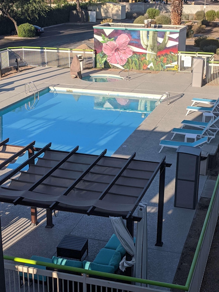 Great price for Scottsdale. Didn’t realize it was a Motel but it seemed pretty secure. The elevators were not working so they let me change to a ground floor room. Cute little courtyard with a gate for each room. The updates were just okay but the bed and pillows were comfortable. The bathroom was clean but the shower head was terrible!!! No water pressure and the smoker smell from next door wafting into my room are my only complaints. I would stay again if I needed to.
