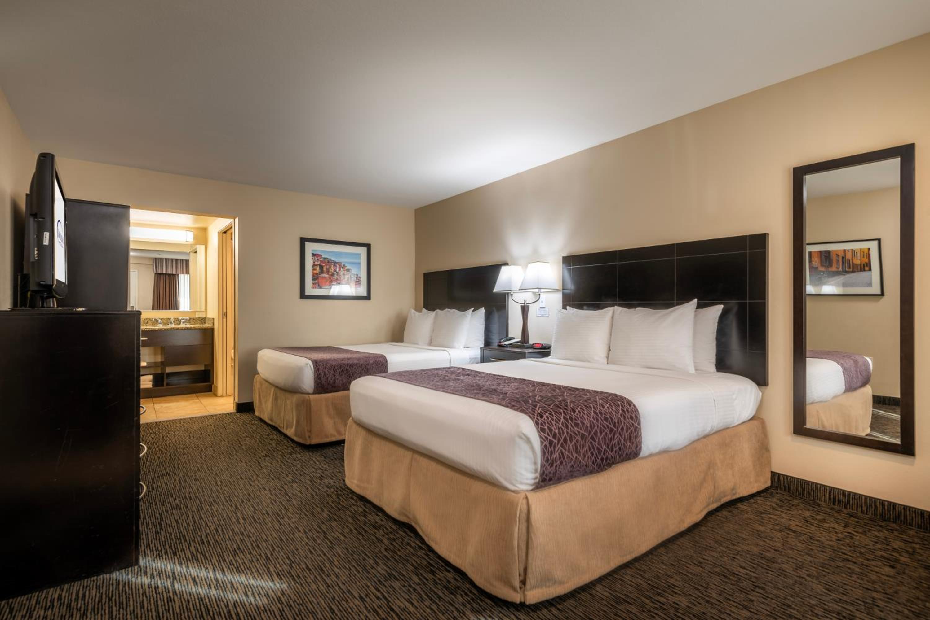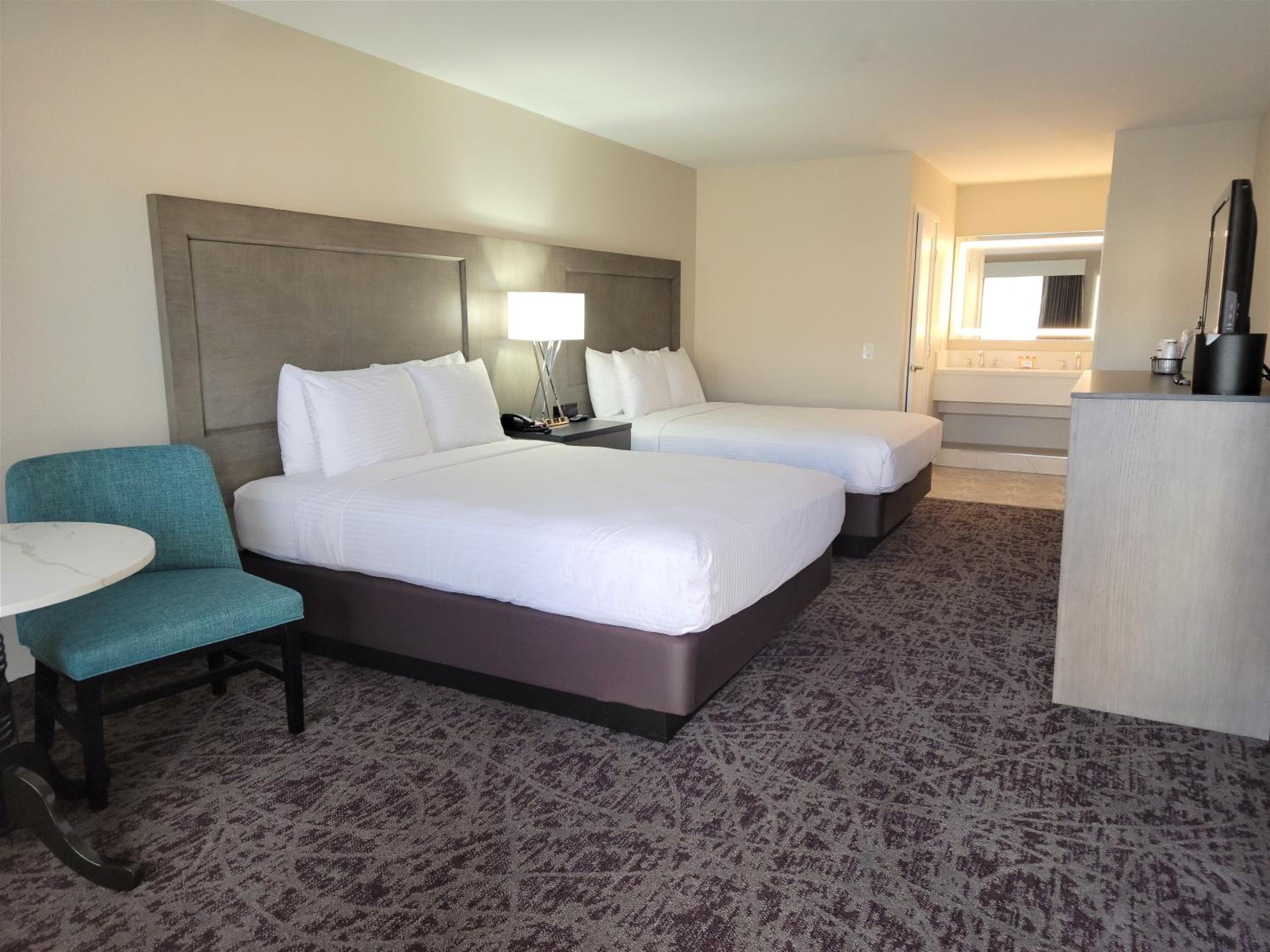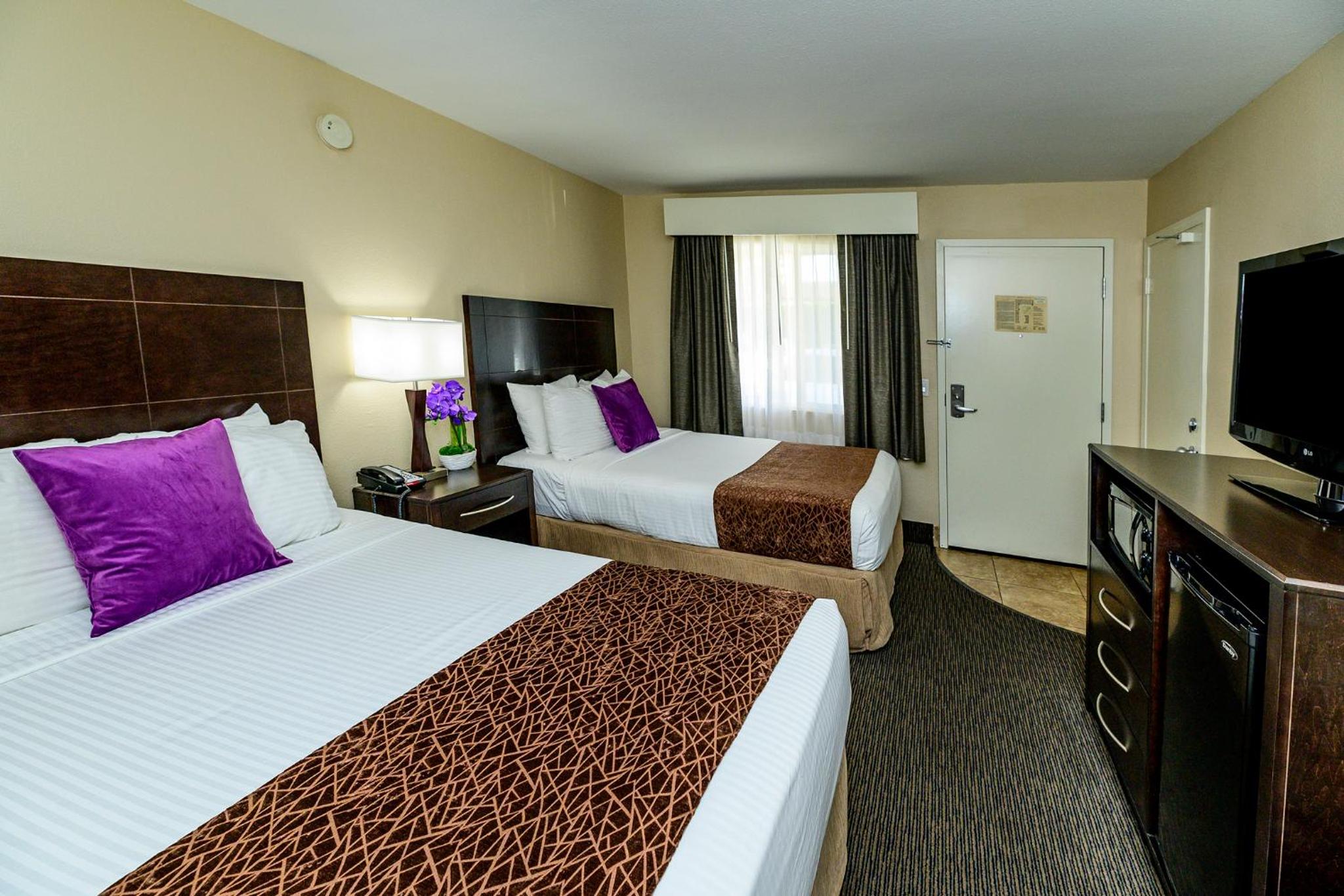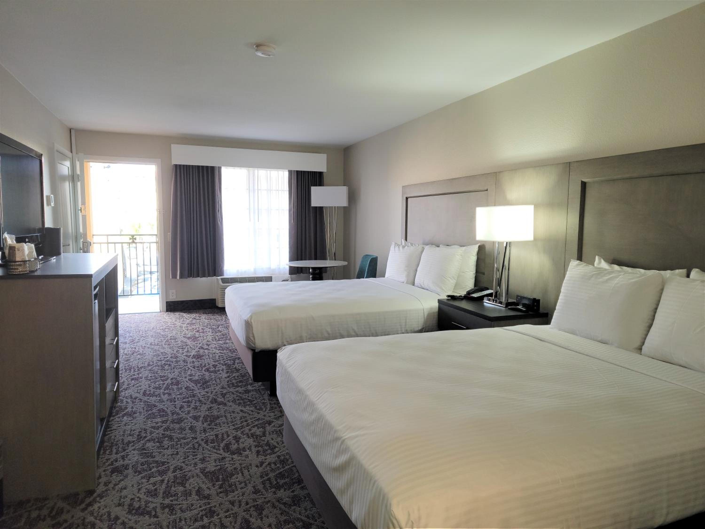 I looked at a few hotels outside Disneyland and we are so happy we stayed at grand legacy. They were so accommodating and nice from my booking date. I had so many questions and requests for 2 boys and 2 adults. Room was clean. Front desk and all staff were so nice and always smiling. Pool was great w towels. Walk was 7 min to security gate. Rooftop was fun to watch fireworks. The room was plenty big for us. We can’t wait to go back. We brought our own crib and it fit in the room w the 2 queen beds. Couch pullout was comfortable