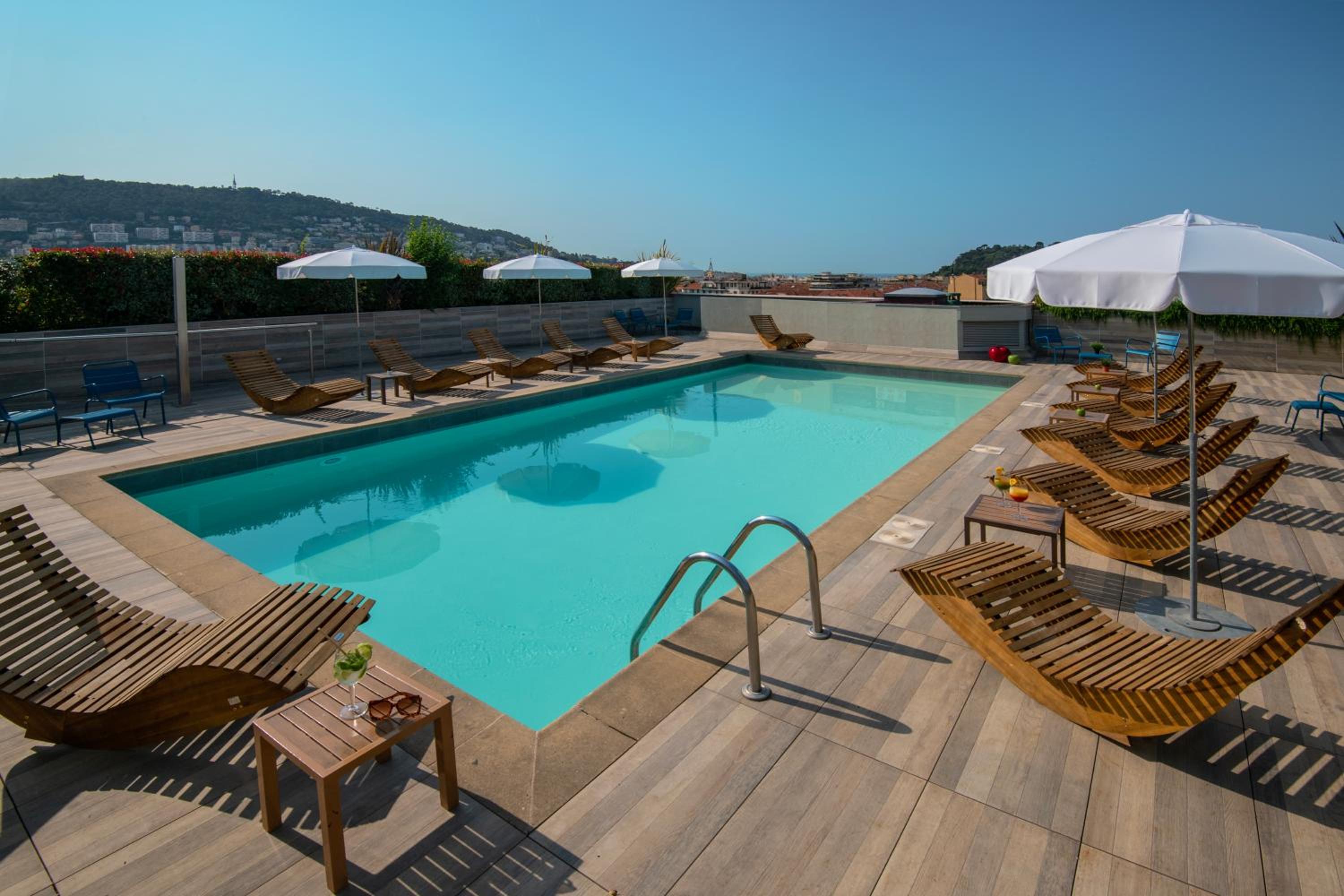 Novotel Nice Centre Vieux Nice offers a stunning outdoor swimming pool on the roof with panoramic city views, a solarium, and a terrace, providing the perfect spot to unwind and enjoy the Mediterranean sun.