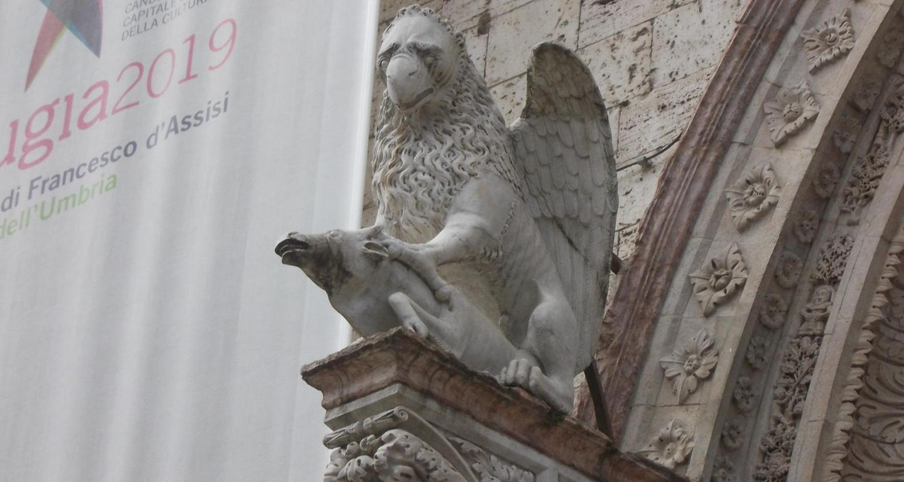 前台男员工热情介绍佩鲁贾老城区。
